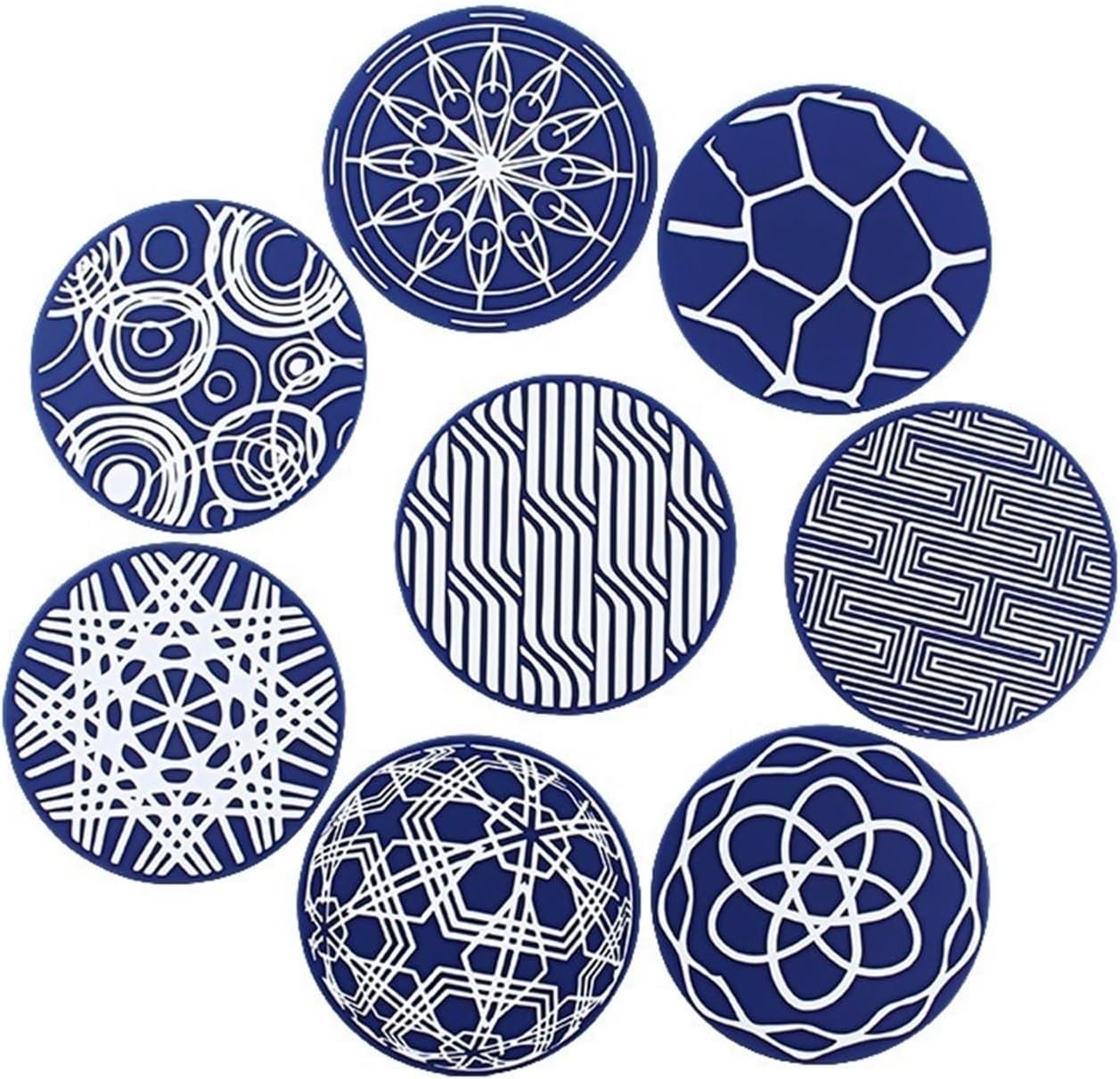 Textured, good-looking, easy to store, does not take up space.Choose a flexible fabric that will not deform when bent.Can be used in a variety of scenarios, selective.Multi-color optional easy to scrub without deformationThe appearance of the placemat protects the table top from damage, can withstand temperature, and is easy to clean without leaving oil stains.: CoasterMaterial: SiliconeSize: Coaster diameter 9.8x thickness 0.3cm; Square short silicone bracket length 10.6x10.6x3cmPacking list: 8 pads +1 storage rack (excluding other display items)Notes:Size information is for reference only, manual measurement may have an error of 1-2 cm.Due to differences between different monitors, the image may not reflect the actual color of the itemthese coasters fit into any home decor setting. They also serve as professional bartender supplies, completing a barware tabletop set, and functioning an absorbing mat at the bar.Cleaning is breeze, simply rinse under running water hang them to dry. When not in use, store all metal holder maintain clean tidy tabletop