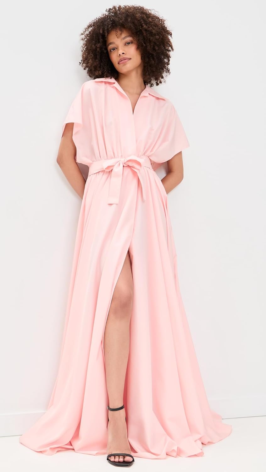 The Norma Kamali Super OS Sleeveless BF NK Shirt Flared Gown features an oversized fit with a flared bottom and a structured collar for a dramatic effect. Completed with a Velcro closure, this gown merges modern sophistication with a bold, flowing silhouette.