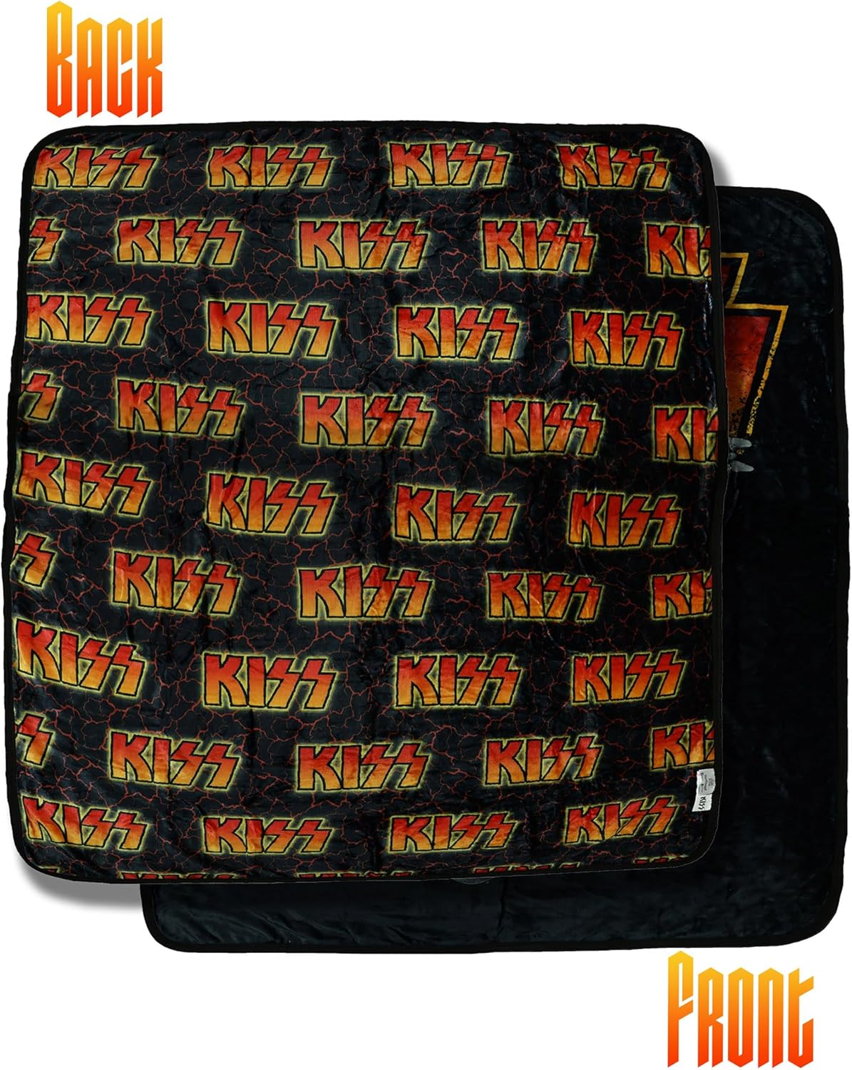 Bring comfort and band spirit together with this KISS double-sided throw. One side features the band members with a bold logo, while the reverse side displays a repeating pattern of the KISS logo. Its 50" x 60" size ensures ample coverage for lounging, layering, or travel. Crafted from 100% soft polyester, this throw combines warmth, durability, and a smooth silk-touch feel. Easy to clean and maintain, it keeps its vibrant design and plush texture wash after wash, making it a reliable addition to any room or seating area.