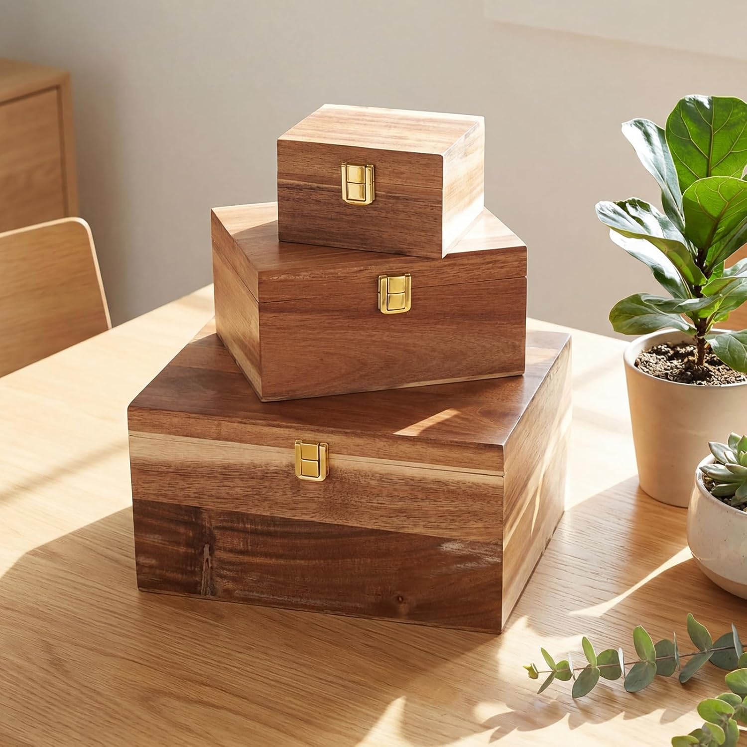 Features: This wooden box with a hinged lid is convenient for storing your personal belongings. Its spacious interior makes it an excellent choice for storing photos, recipes, artwork, and more. Our lockable storage boxes are durable and made from quality wood materials, ensuring your precious memories are preserved for generations. The hinged lid design is smooth and easy to use. Specifications: Material: wood Color: brown Size: 11 x 9 x 6 inch, 8 x 6 x 4 inch, 5 x 4 x 3 inch Package includes: 3 x Wooden Keepsake Box Notes: Manual measurement, please allow slight errors on size. The color may exist a slight difference due to different screen displays.