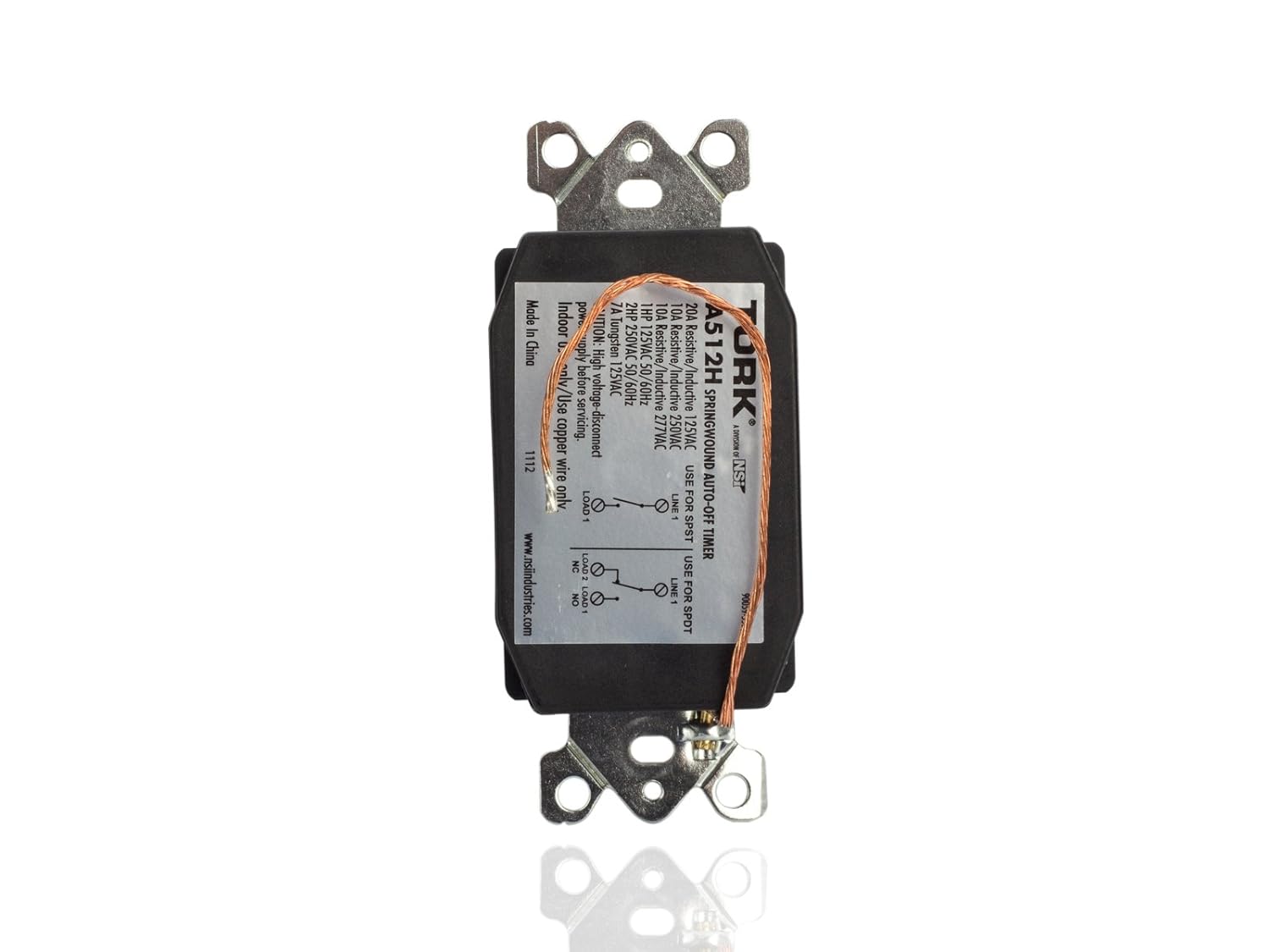 The TORK A512H spring-wound in-wall twist timer carries our legacy of innovation and quality with reliable timekeeping and consistent performance. Use twist timers to set a countdown for automatically shutting off appliances or lighting, saving you energy and trouble. No more forgetting to turn off a garage light or attic fan: with a twist timer, simply wind the knob to the correct duration and automate the process. TORK twist timers are at home in residential environments or a range of commercial applications, including hotels, bathrooms, locker rooms, pools or spas. For everything from kitchen vent fans to self-storage temperature controls, a twist timer switch can simplify your life. The A512H is a SPDT switch that features an ivory faceplate, twelve-hour maximum variable runtime, spring-wound knob, 12AWG terminal size and a voltage range of 125-277VAC. In addition, the entire timer fits inside a standard electrical box to make in-wall mounting a breeze. Trust in the reliable name of TORK, an industry pioneer since 1922, for all of your timer switch needs.