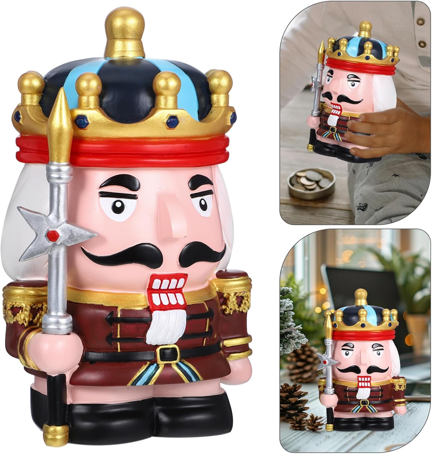 Package List 1 x nutcracker piggy bank Features -Attractive nutcracker design: the nutcracker design adds a decorative element to home, making it a unique and stylish piece savings jar for adults -Ideal gift for all ages: this piggy bank is a nice gift for and adults, suitable for various occasions savings bank for -Strong and safe: made from resin, this piggy bank is reliable, ensuring the safety of your savings piggy bank for -Material:Resin - Size: 17.00X12.00X11.00cm/6.68X4.72X4.32in -Practical money slot: the back money slot and bottom opening provide easy access to your coins coin holder -Nice for : Piggy Bank is ideal for , helping them enjoy the process of saving money while decorating their room money bank -Product Info:Nutcracker piggy bank - Goods Descriptionpiggy bank for office Introducing a delightful and functional way to save your money! Simply drop coins into the slot.boys money bank This charming savings box is not only practical but also serves as a decorative piece, adding a touch of whimsy to any room