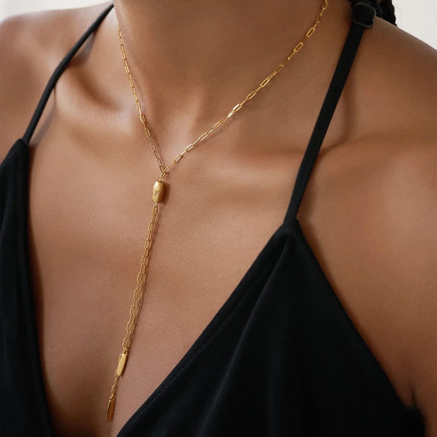 OAK & LUNA - Personalized Lariat Initials Necklace in 0.925 Sterling Silver, 18K Gold Vermeil With Link Chain - Custom Sleek Gift For Her, Mom, Girlfriend, Women - Dainty Elegant Jewelry With Up To 4 Initial For Christmas, Mother's Day, Valentine's Day, Birthday, Anniversary