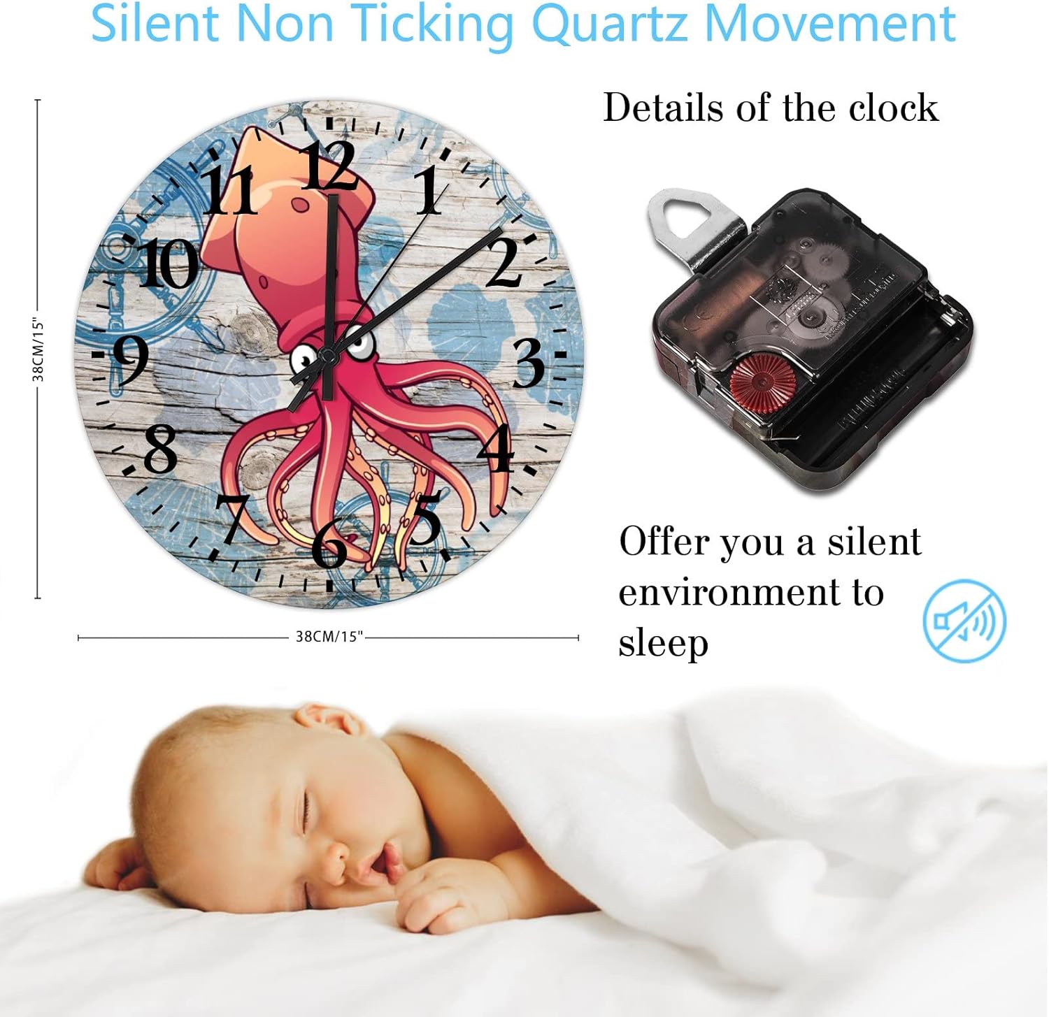 Ocean Animal Octopus wall clock Beach Decor living room clock Battery Operated Silent Arabic Numeral Clock Dining Room Decor 15 Inch??Details:Product Size: 10/12/15 inches, (25/30/38 cm)Shape:RoundMaterial: Wood??Functional Home DécorThis Seashells Sea Themed clock aren't just for timekeeping. They function as beautiful wall decor pieces, beyond telling time, and bring both style and purpose to any room.A charming home decoration, very suitable as a housewarming gift, making the home more warm. Suitable for any room, you can put it in any room such as home, living room, master bedroom, kitchen, bathroom, home office, etc. Elegant, durable and stylish.??Clock Hands Troubleshooting Guide:Check that the battery is a new battery and not a used battery.Make sure the hour and minute hands are not crossing or touching each other. If they are, adjust the hands by slightly bending them.See if the center pin that holds the hands together is firmly pushed in or screwed on, depending on the style.If hands are still not moving after the above, please reference the hands replacement instructions included with all of our open face clocks.