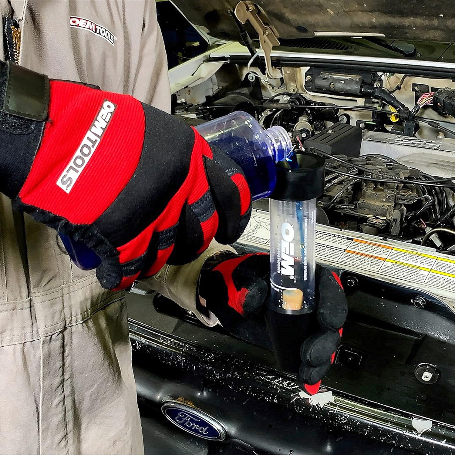 The OEMTOOLS 37145 Combustion Leak Tester and Head Gasket Leak Tester is ideal for finding internal engine combustion leaks and blocks quickly and easily. This Block Test Kit is designed for professional auto mechanics looking for a quality detector test. The heavy duty head gasket test is a smart addition to your OEMTOOLS toolbox. Think there is a leak in your engine block? This OEMTOOLS leak down tester will help you speed up identifying the problem so a repair can start right away. If there is a head gasket leak, bolt block pulled bolts, stud blocks, or warped sealer surfaces, the combustion leak detector fluid in the plastic tester bottle will turn from blue to yellow. Once the color changes, you will know that the pressure or leak problem is there. This block checker, head gasket leak tester, and combustion leak test also comes complete with a sturdy carrying case, perfect for any mechanic. Requires OEMTOOLS 25739 Combustion Leak Detector Fluid, sold separately.