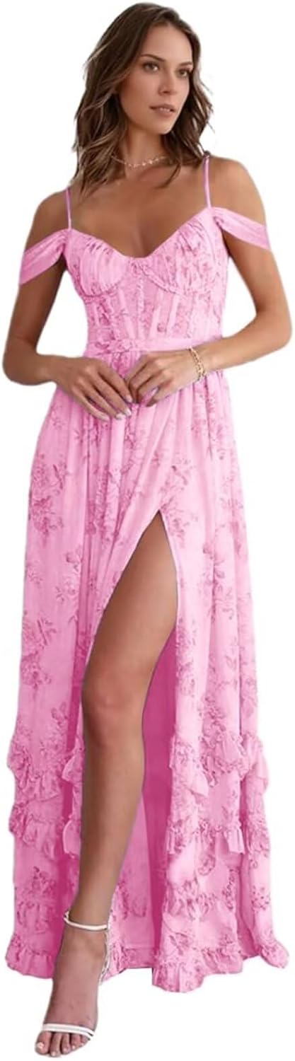 Welcome to our store! We have been engaged in manufacturing women dresses including Women's Wedding Dresses,Prom Dress, Bridesmaid Dresses, Homecoming Dresses, Formal Evening Party Gowns and Any Other Special Occassion Dresses.Off The Shoulder Bridesmaid Dresses with Slit Spaghetti Strap Floral Chiffon Wedding Guset Dresses Summer Ruffle Semi Formal Dress for WomenClosure type:Drawstring BackDress Length:Floor LengthNeckline:Off The ShoulderStyle:Elegant And SexyIf you want to return the goods,do not remove the labels,alter or wash the Dresses,and make sure they are in their original condition--unworn,unwashed ,unaltered ,undamaged,free of lint and hair,and with the labels intact and still attached.Dear friends, please contact us before return or exchange, we will give you the best service. And we really hope you like it.Custom Made Service:If you can't make sure your size,just order the similar size then e-mail us your measurement details as list.1.Bust_____Inch2.Waist_____Inch3.Hips_____Inch4.Shoulder to Shoulder ____Inch5.Shoulder to floor ___Inch6.Height: _____Inch7.The height of your high heel shoes: _____Inch8.The date you need the dress_____Attention:1.Please allow 1-3cm differs due to manual measurement.2.Color may have color deviation due to the different screen Display.3.Please do not put the dress in water and hot sunshine for long time, it may damage them.Thank you!