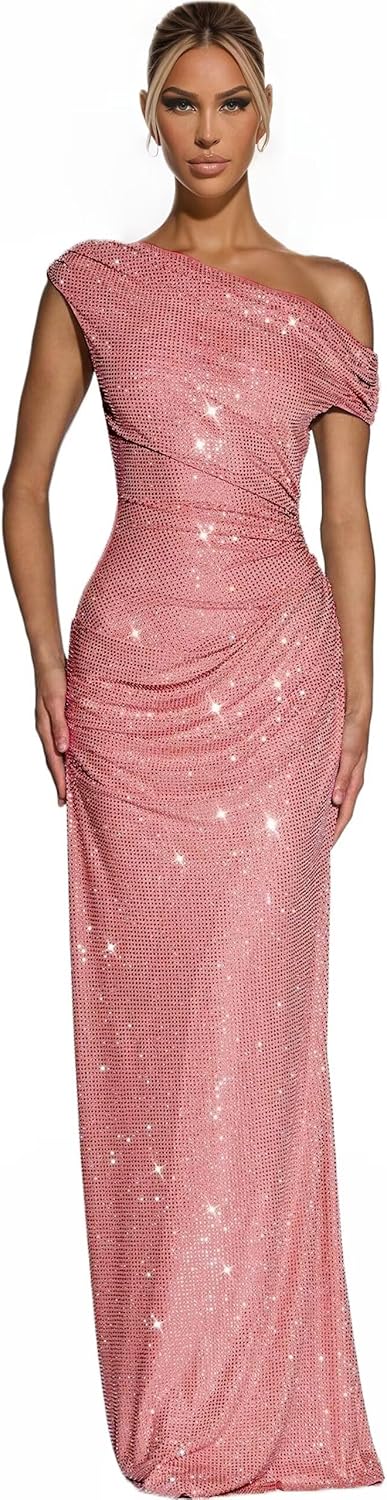 • Sequin Prom Dresses 2026,Sparkly Cocktail Dresses for Women,Off The Shoulder Wedding Guest Dress Summer,Mermaid Evening Dress,Long Party Dresses for Teens,One Shoulder Bridesmaid Dresses,Maxi Formal Mother of The Groom Dresses with Sleeves,Short Sleeve Christmas Dress