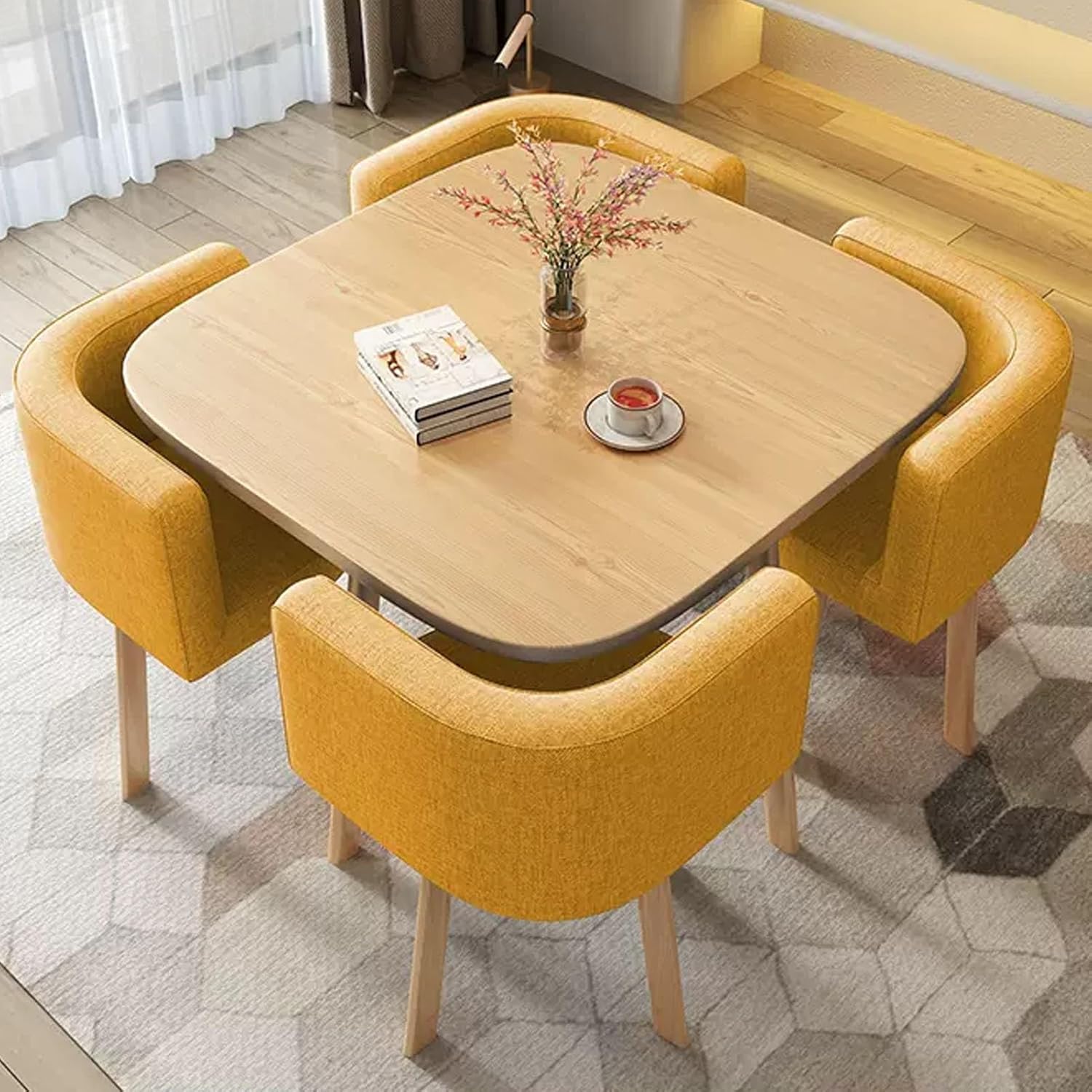 This Office Table and Chair Set can also be used as a small dining table in the kitchen or as a small conference table in the office.The anti-skid rubber footpads can protect your floor from scratchingSmall office reception room club table and chair set the package is divided into many boxes, you may not receive them at the same time.Product parameters:◆ Product name: office reception club table and chair set◆ Color: Green, Light grey, Grey, Orange, Yellow, Blue◆ Table shape: Square◆ Table material: Imitation wood grain board tabletop◆ Table and chair leg material: Metal◆ Table diameter: 80cm/31.5in◆ Table height: 73cm/28.7in◆ Chair material: Cotton and linen + sponge◆ Chair total height: 75cm/29.5in◆ Applicable number of people: 4 people◆ Packing method: AssemblyPacking list:1*table,4*chairs (other things are decorations, not included)Warm Tips:1. Size Description: The product is completely measured by hand and may have an error of 1-3 cm. Please refer to the actual items received.2. Picture description: The product is real. Due to problems with light, angle, display, etc., there may be slight chromatic aberration, please forgive me.