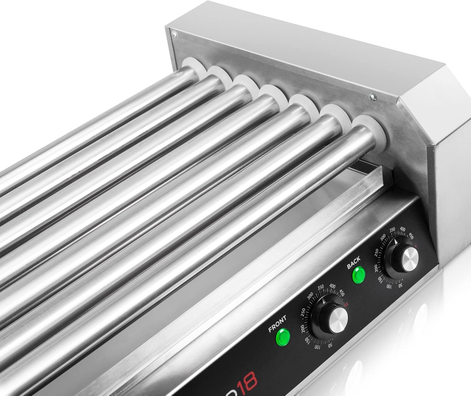 The electric hot dog machine from Olde Midway makes it easy to prepare mouth-watering rotisserie style hot dogs, conveniently cooking up to 18 hot dogs at once on its 7 stainless steel rollers. This easily portable but substantial commercial-grade cooker allows you to cook almost anywhere, without the trouble of a full-size gas grill. The professional-grade construction of this 900-watt machine is ideally suited for both commercial and household use, including company cookouts, convenience stores, movie theatres, farmer's markets, concession stands at school events, backyard BBQs, birthday parties, sporting events, and more. Versatile rollers can handle all types of meats, including standard as well as extra-large, stadium-sized hot dogs, thick and thin sausages, and even frozen hot dogs. Easy-to-use, simply place hot dogs on the rollers, and set temperature to cook. Rollers rotate a full 360 degrees for thorough, even cooking. Dual-temperature controls located on the front panel of the hot dog maker allow for continuous cooking on the back rollers, while the front rollers keep the cooked items hot and ready to serve. Includes a removable stainless steel drip tray for fast and easy clean up. Loaded with safety features, this cooker has a built in-fuse, grounded US-standard 120-volt power cord, and non-skid rubber feet. Dimensions: 23" (wide) x 13" (deep) x 7" (high) Weight: 20 pounds. Olde Midway is well-known within the industry for finely crafted, specialty appliances that combine stylish design with exceptional durability at a great value.