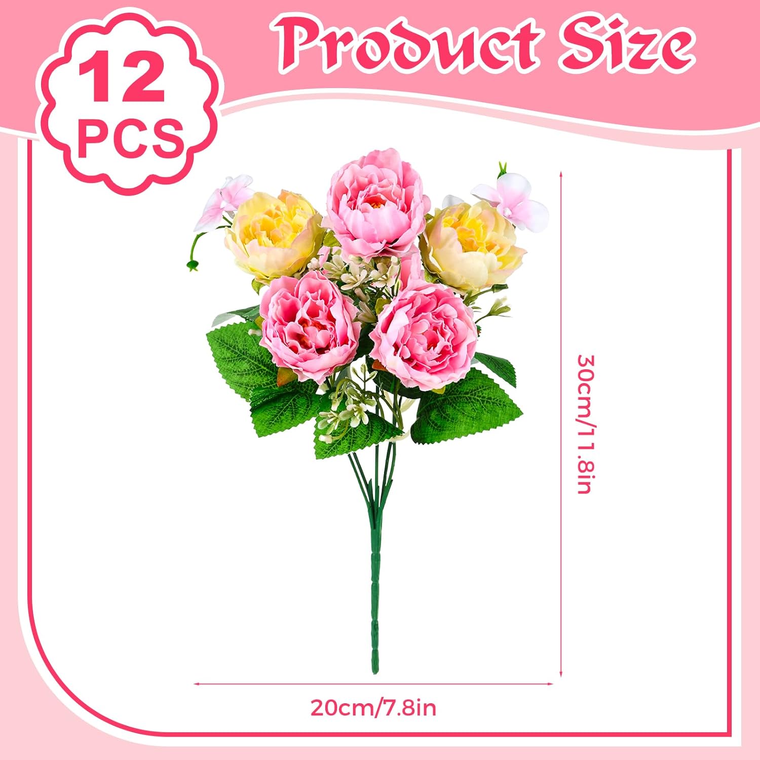 Elevate your home decor or special event with our 12 Bundles Peonies Artificial Flowers.These stunning faux peony flowers are expertly crafted from premium silk, creating lifelike arrangements that will impress friends and family.Perfect for centerpiece table decorations, weddings, bridal showers, or everyday floral displays, these vibrant artificial peonies provide lasting beauty without the hassle of upkeep.With bendable stems and detachable buds, you can easily customize your arrangements to suit any occasion.Enjoy effortless elegance with our beautiful peony bouquet that truly captures the essence of natural blooms.