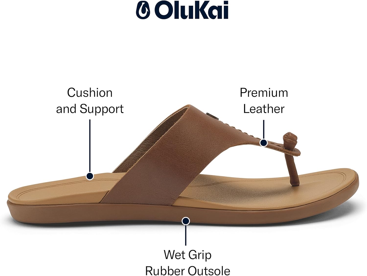 The OluKai Ho"opio Mele is made to do it all. Combining signature OluKai craftsmanship with everyday wearability and style, this sandal combines lasting support with premium details such as a vario strap designs and a knotted toe post. Full-grain leather strap upper, leather lining, and ethylene-vinyl acetate insole. Slip-on style. Open toe design. Rubber outsole.