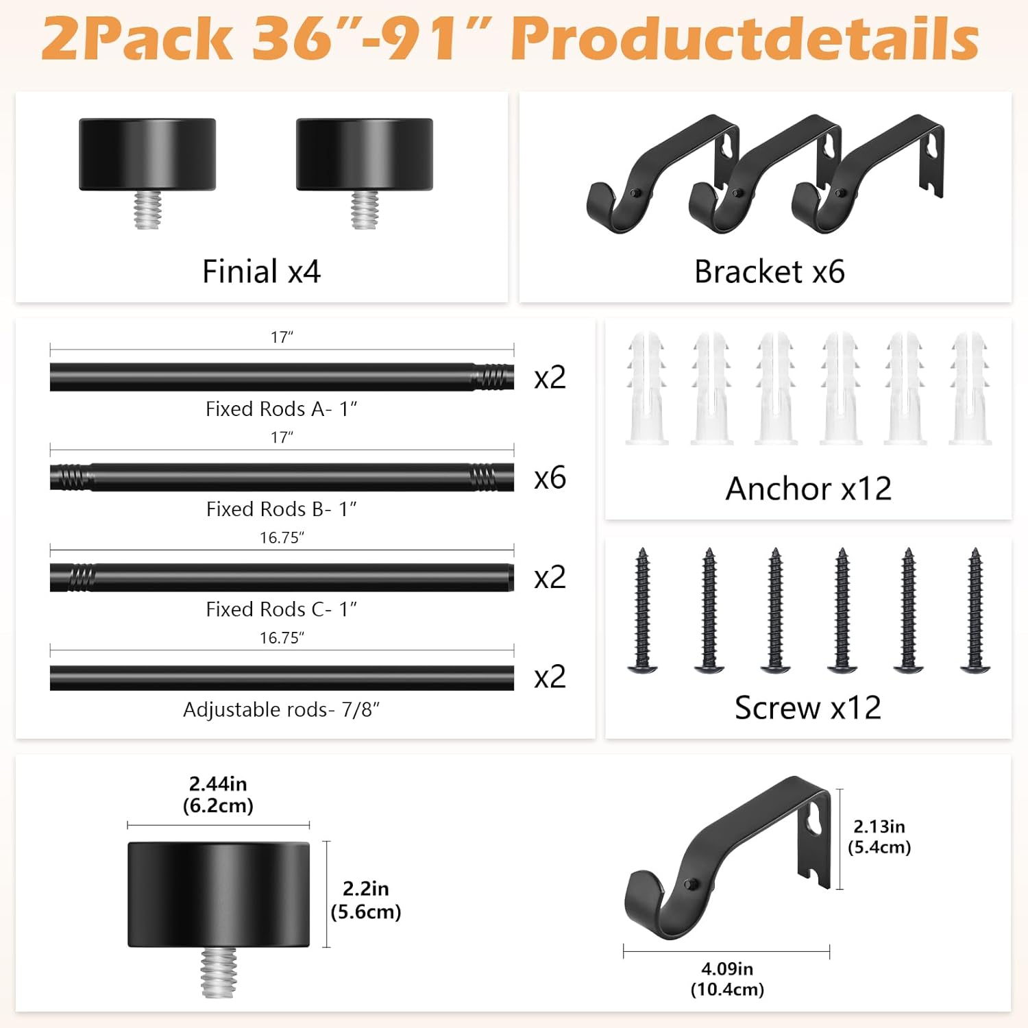 | Included Components | Anchorsx 14, Bracketsx 6, Finialsx 4, Rodsx 12, Srewsx 14 |