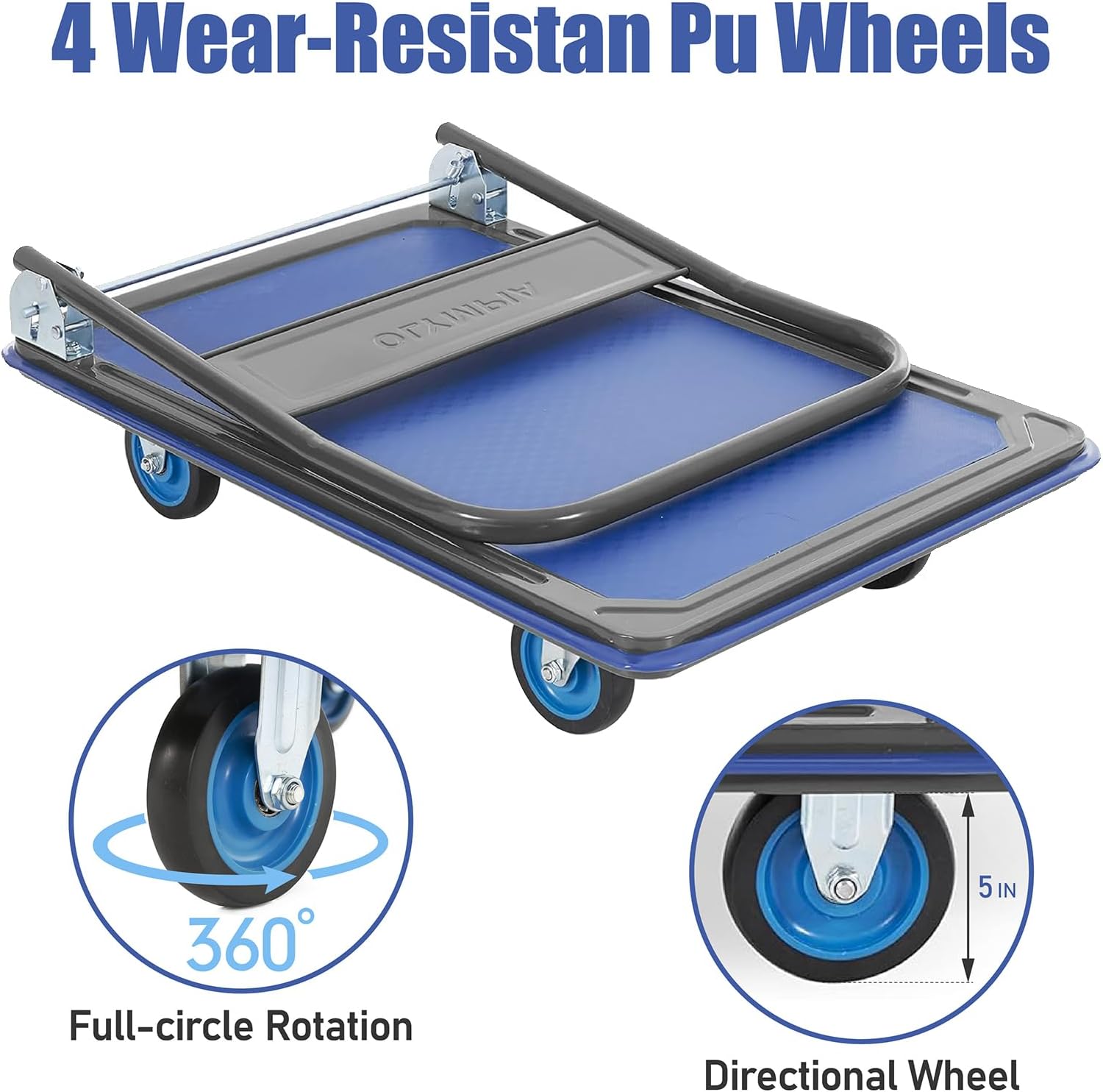 • Durable use: Non-slip platform keeps belongings secure, while wear-resistant wheels are suitable for all surfaces, ensuring long-lasting durability and reliable performance for years.