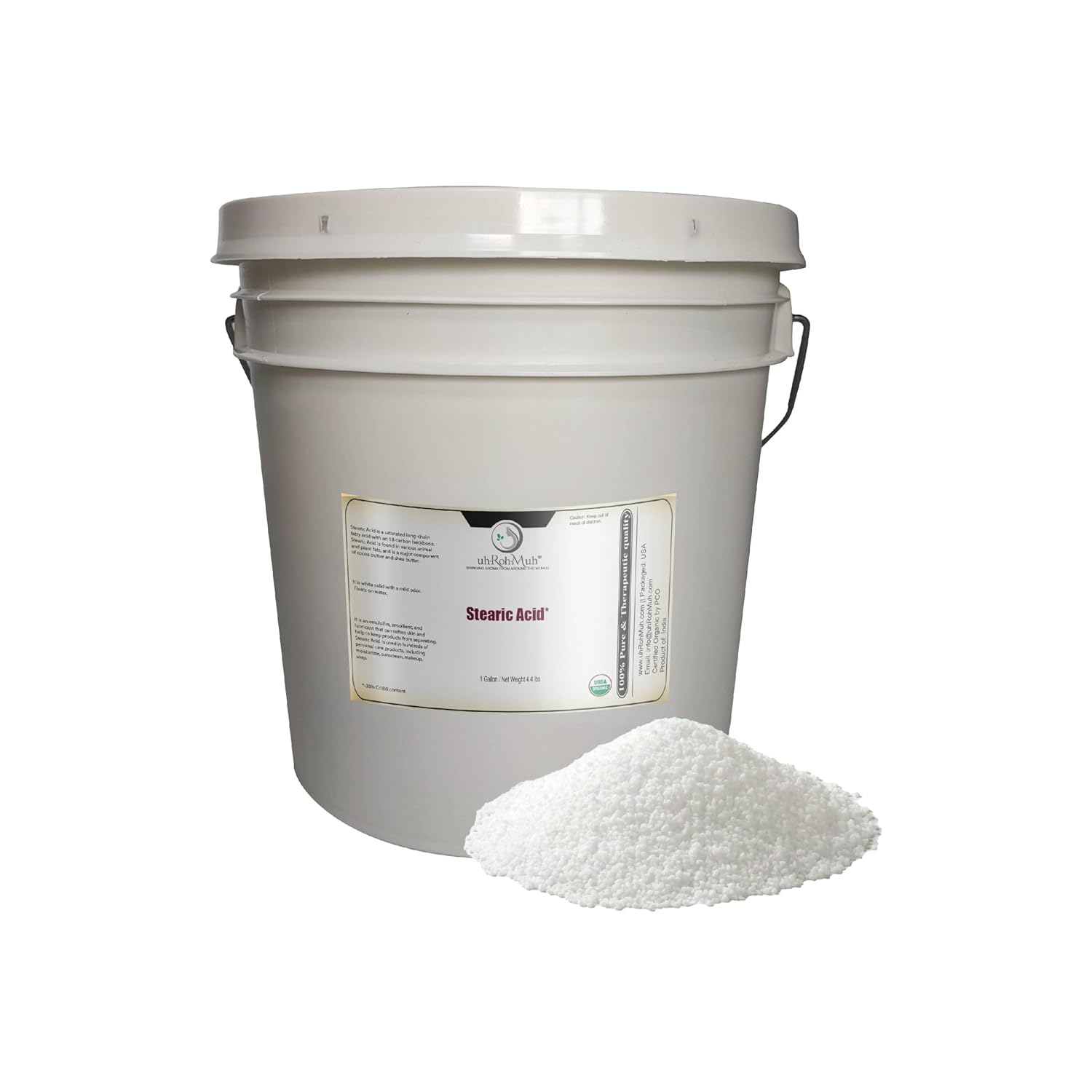 Experience the versatility of Organic Stearic Acid 38%—a USDA Certified organic ingredient derived from cold-pressed flax seed oil and/or mahua seed oil. This triple-pressed, white granular fatty acid offers high purity and performance across cosmetics, food, pharmaceuticals, and industrial applications.A saturated, long-chain fatty acid, stearic acid is naturally present in plant fats and is valued for its emulsifying, thickening, and stabilizing properties. Our version is 100% plant-based and classified as natural.🌿 COSMETICS & PERSONAL CARE: Acts as an emollient, surfactant, and stabilizer in products like creams, lotions, soaps, shampoos, lip balms, shaving creams, sunscreens, and makeup bases. It enhances texture, locks in moisture, and prevents product separation.🥣 FOOD USES: Used as a release agent, hardener, and emulsifier in confections like chocolate and ice cream. Note: Only for food use if processed per food-grade standards—not intended for oral consumption in this form.💊 PHARMACEUTICALS: Functions as a tablet lubricant and excipient in pills and capsules, aiding in compression and consistency.🏭 INDUSTRIAL USES: Widely used in greases, lubricants, plasticizers, mold release agents, and candles to improve durability, texture, and performance.✅ SAFETY: Safe for topical use. Patch test recommended. Not for ingestion. Consult a healthcare provider if pregnant, breastfeeding, or managing a condition.🔬 TECHNICAL DETAILS:Extraction: Cold PressedSource: Flax Seed and/or Mahua Seed OilAppearance: White, odorless granulesOrigin: IndiaBotanical Name / Plant Part: N/AA reliable base for formulators, manufacturers, and artisans—ideal for skincare, tablets, and beyond.
