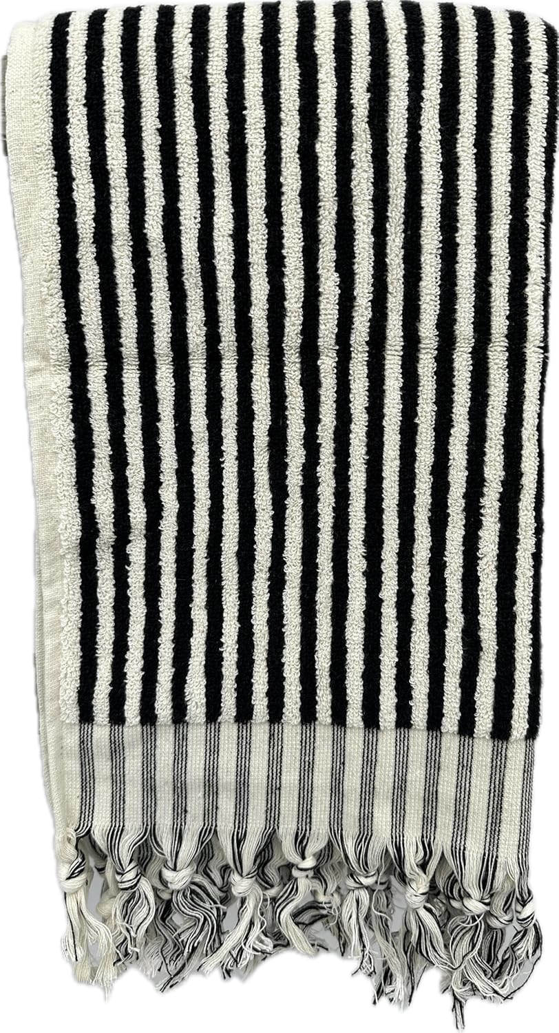 Organic Turkish Towel 33x72 Inches, Turkish Bath Towel, Beach Towel, Black White Soft%100 Cotton Fluffy Towel, Thick Face Hand Towel, (Black-White, 33x72)
