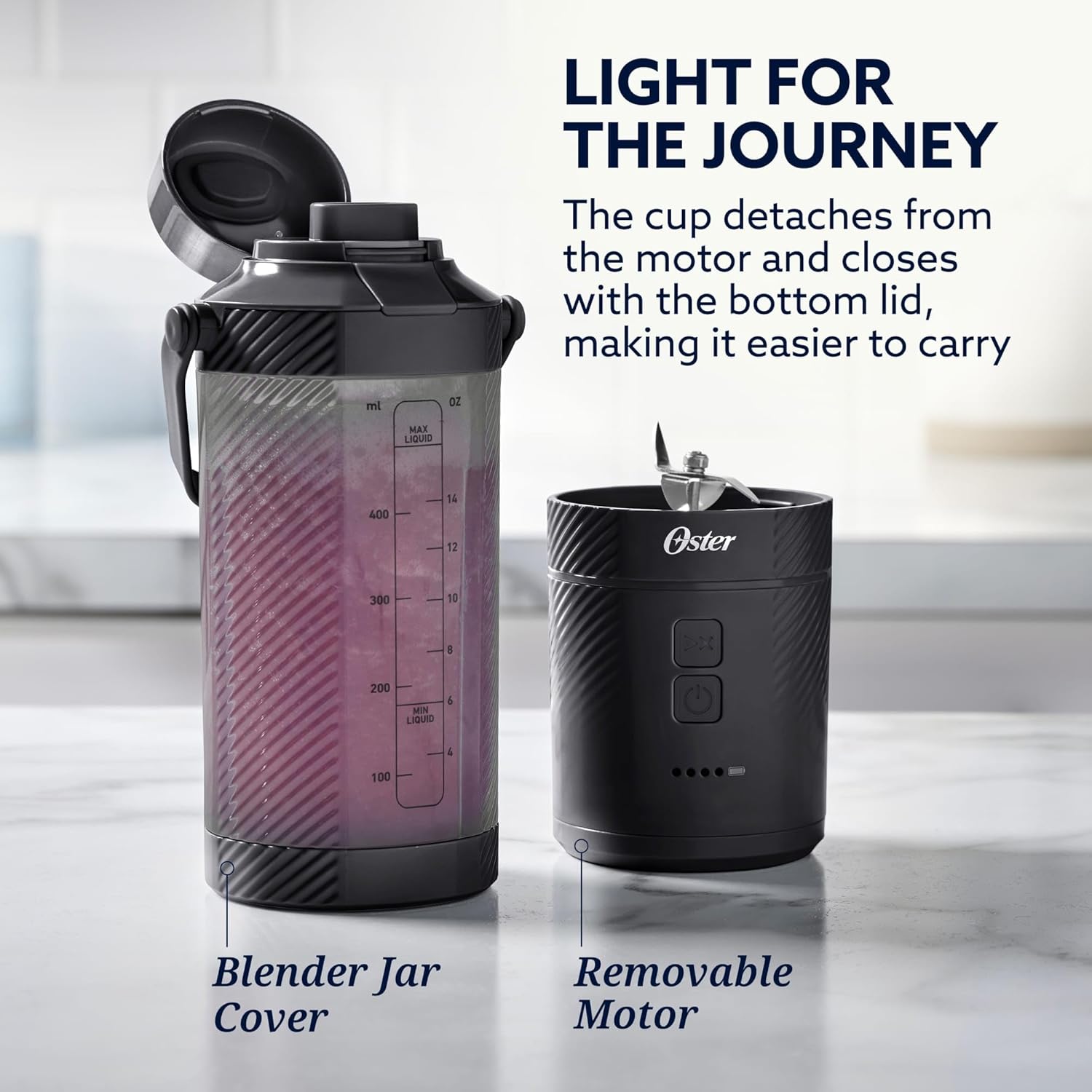 Introducing the Oster GoMAX Portable Blender in sleek black. This smoothie blender is perfect for on-the-go blending, making it easy to whip up your favorite smoothies anytime, anywhere. Personalize your blends with this convenient and compact blender from Oster.