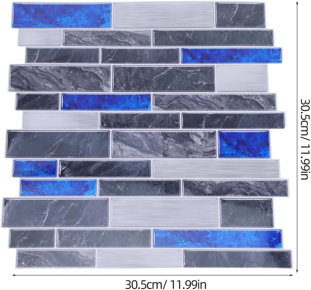 Package List 10 x Peel and Stick Backsplash Features -Product Info: Waterproof wall stickers -Material:PVC -Sophisticated marble look: instantly upgrade your kitchen and bathroom decor with these realistic marble pattern stickers marble grain tile sticker -Resistant to oil: made from durable pvc, these stickers are for wet and greasy environments, keeping your walls clean kitchen oil proof sticker -Compatible with various surfaces: suitable for tiles, wood, and smooth walls, these stickers ensure a strong and lasting adhesion wall tile transfers -Application: the self adhesive design allows for easy and quick installation without the need for professional tools oil-proof kitchen sticker -Size:30.50X30.50X0.10cm/11.99X11.99X0.04in -Durable and easy to maintain: these stickers are designed to withstand wear and tear, making them easy to clean and maintain their appearance marble peel and stick -Color:BlueGoods Informationself adhesive tile Whether used as a backsplash in the kitchen or as an accent in the bathroom, their waterproof and oil-proof ensure beauty and functionality in any environment.kitchen and bathroom waterproof stickers Enhance your home with these peel-and-stick marble-patterned wall decals, offering a quick and stylish way to upgrade your space