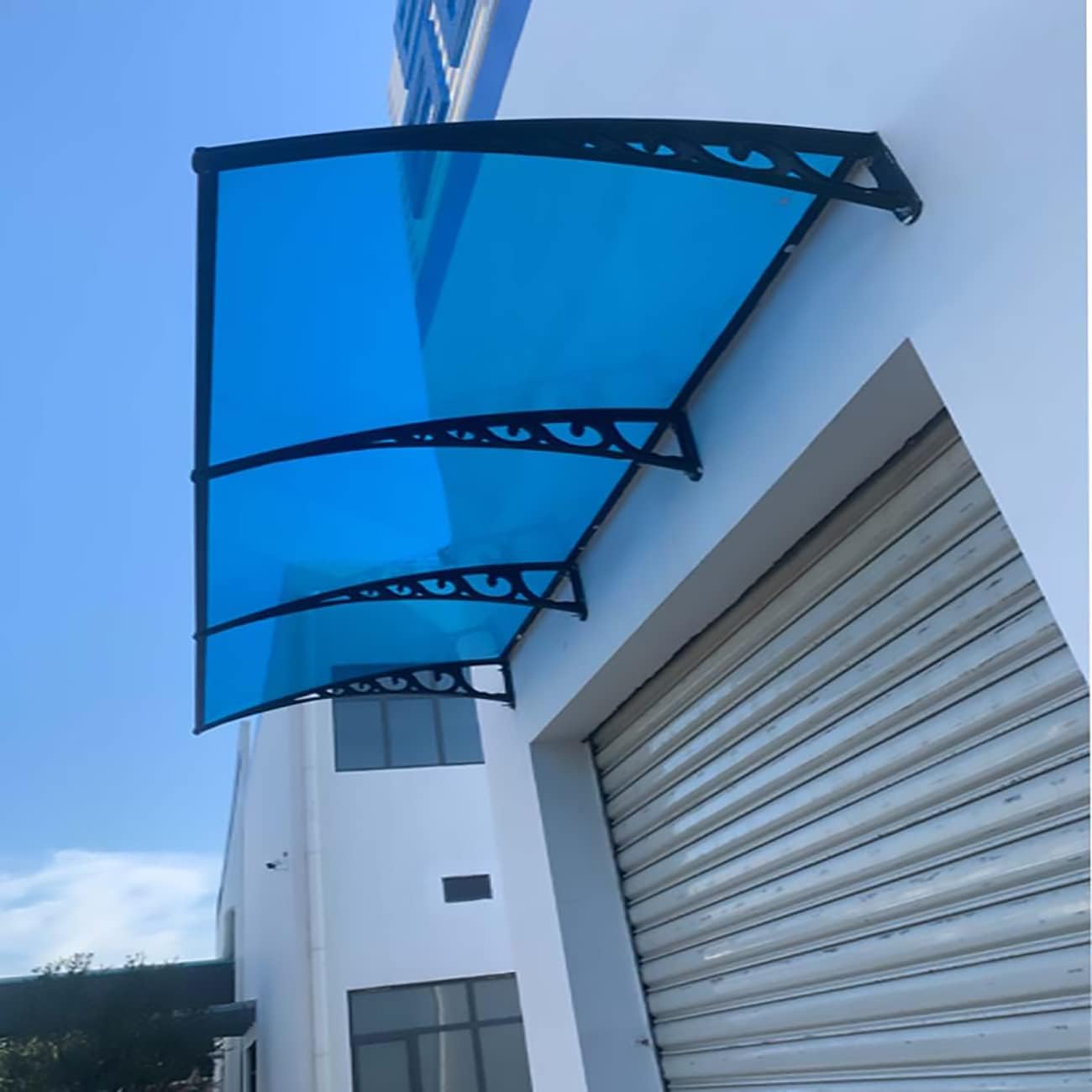Installing awnings on the front and back doors and windows has become a popular trend.It is a necessity to protect you and your family from rain during rainy and snowy weather.It is also necessary to open the doors and windows to let fresh air in the room! Technical data: Name: Front door canopy awning Dimensions: width x length Roof panel material: polycarbonate Frame material: aluminium Stand colour: Black Roof panel colour: Blue transparent Design: Curved design Installation method: Vertical wall installation Suitable outdoor temperature: approx. -40°C to approx. 120°C Expandable use: canopy front door awnings of the same size for splicing and mounting buy, please arrange and buy according to your needs! Application: Rainproof/Snowproof/UVproof. Scope of delivery: 1 x Canopy 1 x mounting material 1 x Assembly instructions Precautions: 1. a gap of 5mm should be left between every two awnings and then carefully sealed with splice strips to prevent leakage and provide highly effective protection. 2. make sure that all screws are correctly installed. If they are loose, tighten them in time. 3. if you have any problem after receiving the product, you can let us know that our professional customer service will help you solve the problem within 24 hours.