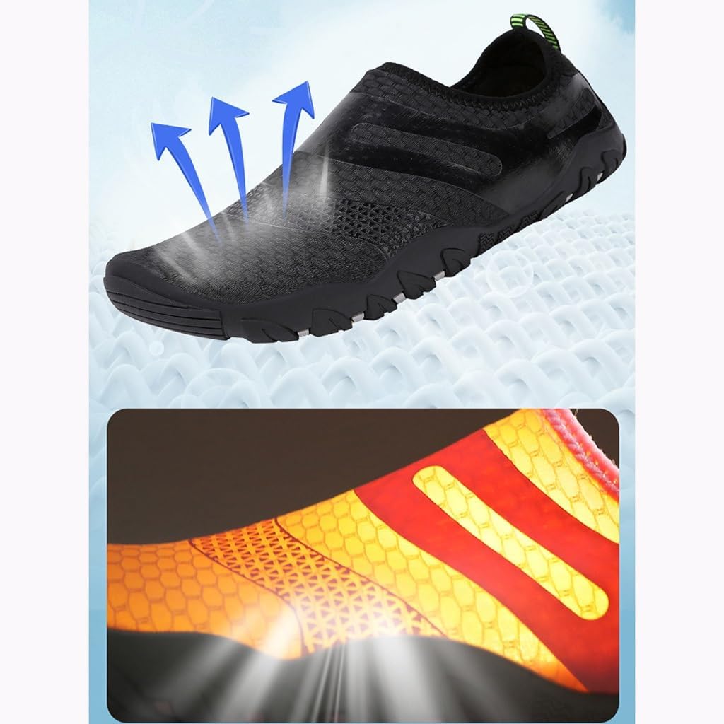The sole is made of rubber material and features a drainage hole design at the bottom.Excess inside the shoes, not sticky when wet, with a textured bottom.Strengthen anti slip grip and prevent slipping when walking.Shoe toe/heel design: The shoe toe is thick and protruding.Swimming, fitness, exercise, and other relaxing activities are suitable for various scenarios.Material: RubberMaterial of lining: mesh fabricTip:1. Due to monitor differences, the image may not reflect the actual color.2. Due to manual measurement, please allow an error of 1-2cm for accuracy!Due to manual measurement, please allow 1-3cm error. Thank you for your understanding