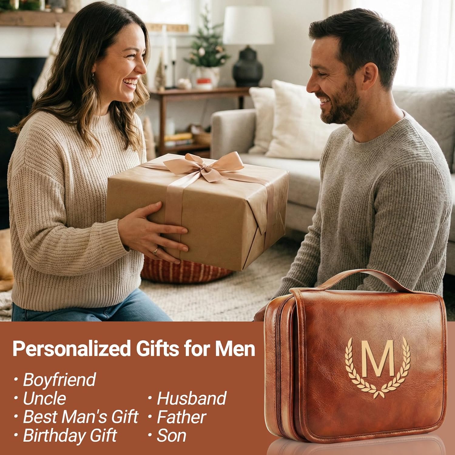 THE ULTIMATE PERSONALIZED GIFT FOR HIM: Elevate your gift-giving with a monogrammed toiletry bag for men. Each toiletry bag is distinguished with a gold initial, turning a travel essential into a personal statement. As one of the top traveling gifts for men, it's the perfect present for any occasion. This premium personalized toiletry bag is more than just a personalized shaving bag for men; it's a memorable token of appreciation