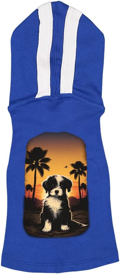 • Palm Graphic Dog Shirt with Hoodie will keep your dog warm without adding any weight. The cuffs and hem are designed with elastic ribs to effectively lock in warmth. Also, this hoodie retains its shape well after washing.
