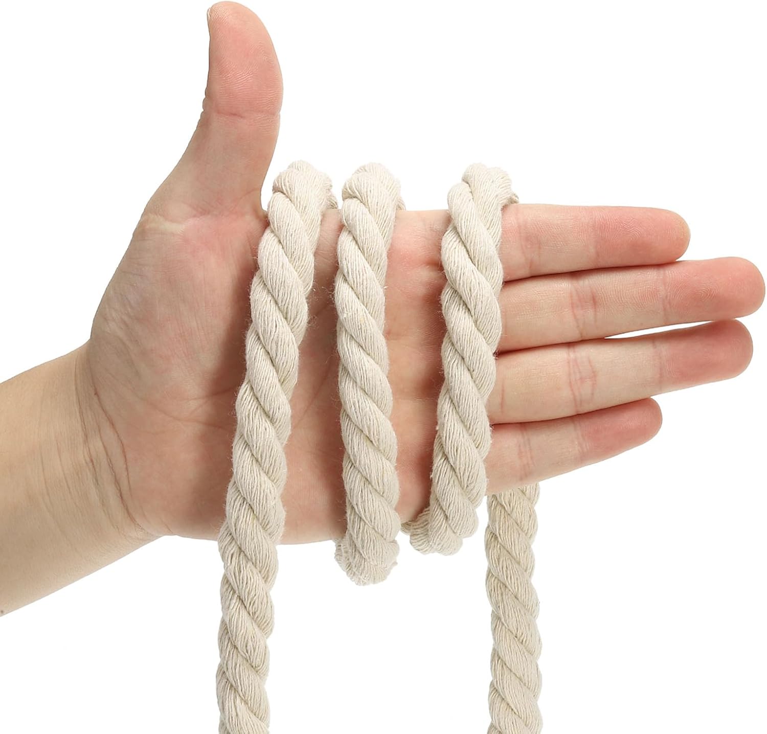 This cotton rope can be widely used in DIY crafts making, home decoration, hanging basket hammocks, swings, wall decorations, hanging plant pots, making clothes hangers, cat scratching post, gardening, outdoor tug-of-war activities, etc.SpecificationColor: BeigeMaterial: CottonDiameter: 2.5 cm / 0.98 inchOverall Length: 15 m / 49.2 feetPacking List: 1pcs x Natural Twisted Cotton RopeAdvantageThis Strong Soft Twist Rope is made of cotton material, soft elastic and strong, washable, and easy to dry for easy care.The cotton rope has a 3-strand tightly woven structure, which has a strong load-bearing capacity, and easy grip ensuring a comfortable and secure hold during gaming.Both ends of the rope have sealing tape to prevent the rope from unraveling during use.InstructionThe natural thick cotton rope can meet your various needs in daily life, and it can be cut according to your needs when you use it.NOTE: The cotton rope can be placed directly in the washing machine, but be gentle, the cotton may shrink.Please make sure the size is correct before placing an order.