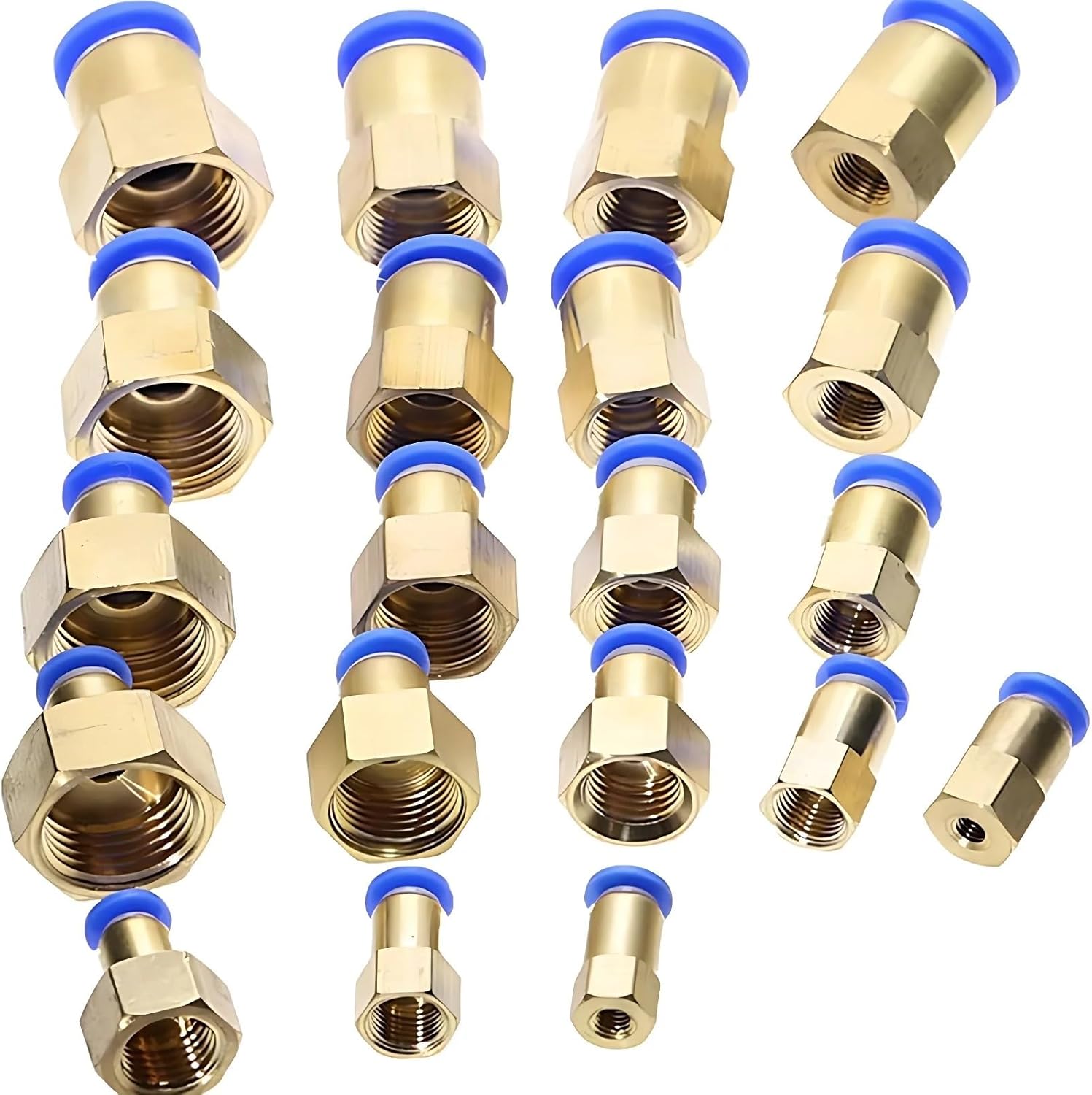 Fittings50/100/500/1000 PCS PCF 4mm-12mm Pneumatic Fitting Thread 1/8'' 1/4'' 3/8'' 1/2'' air Thread Female Straight Air Fitting Connector Tube Push in,PCF4-01,PCF6-02,PCF8-03,PCF10-04,PCF12-01Description:Using exquisite craftsmanship, the connection with the hose is tighter, the sealing is stronger, and it is safe and reliable. The hose design makes work easier and more effective.Model Number:PCF PCF4/6/8/10/12-01/02/03/04Fluid Type:Air/VacuumOperating Pressure: 0~10.2kgf/cm2 (0~1.0Mpa)Negative Pressure:-750mmhg (10 Torr)Operating Temperature Range:0~60CFit For Tube Material:PU/Nylon,PolyurethaneQuick Fitting Material:Brass/Plastic