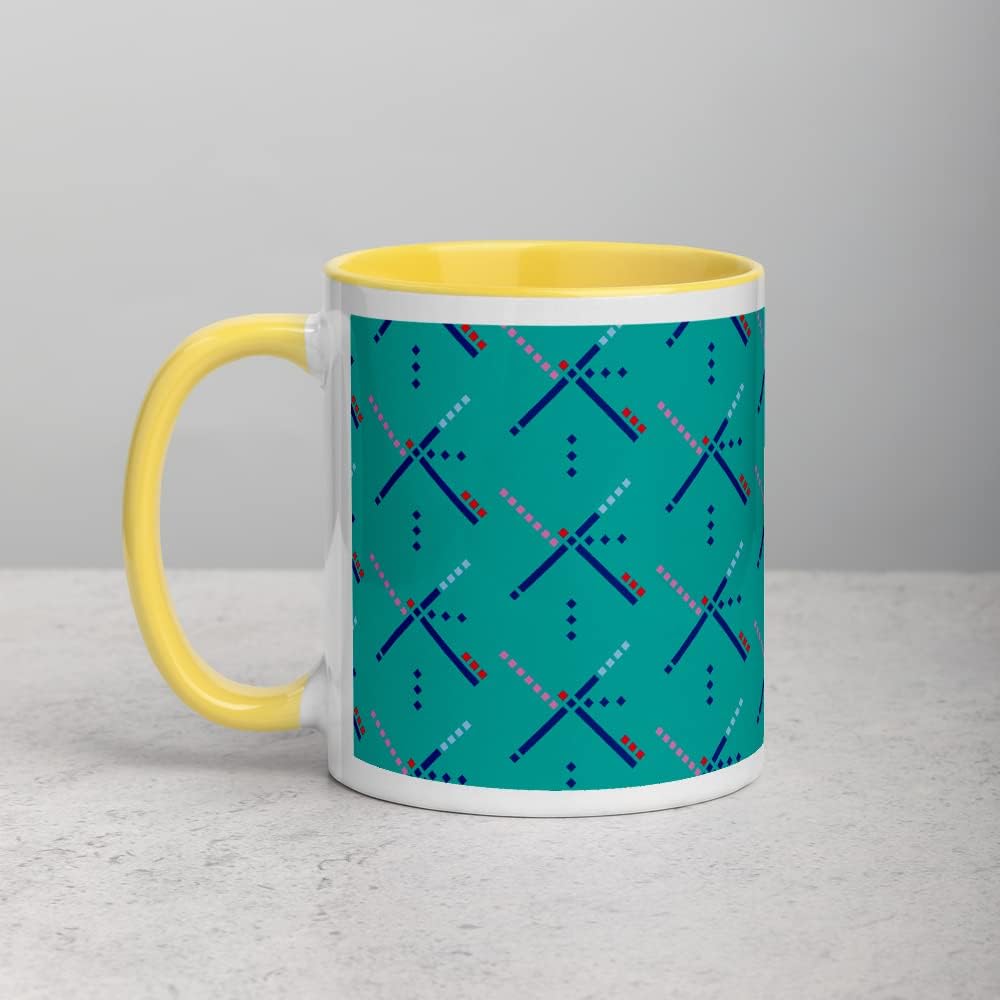 Add a splash of color to your morning coffee or tea ritual! These ceramic mugs not only have the beautiful Portland PDX airport carpet print on them, but also a colorful rim, handle, and inside, so the mug is bound to spice up your mug rack. ~Ceramic ~Holds 11 fluid ounces ~Height: 3.85″ (9.8 cm) ~Diameter: 3.35″ (8.5 cm) ~Color on rim, inside, and handle ~Dishwasher and microwave safe ~Printed on demand
