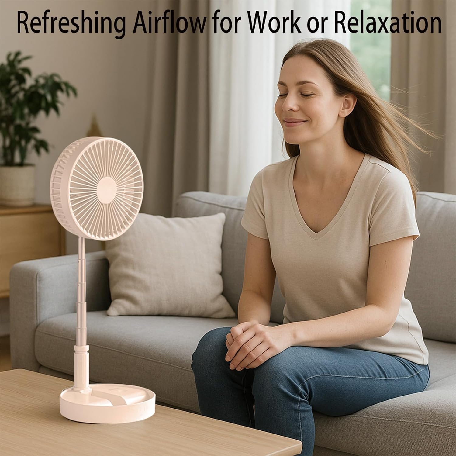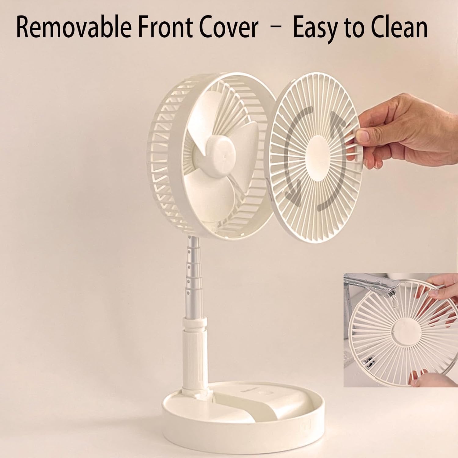 Quiet Table Fan for Room and office, Camping. Easy to Foldaway, Adjustable Height or Angle, Rechargeable.
