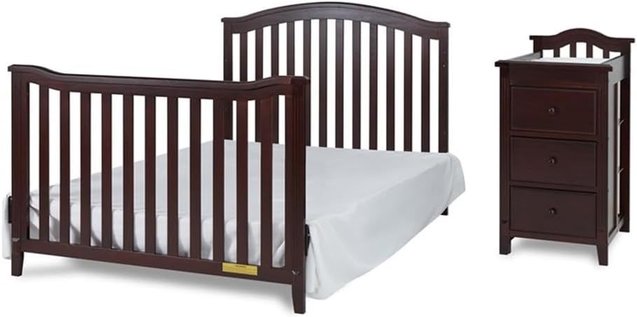 The versatile 4-in-1 Convertible Crib and Changer is perfect for the space-conscious family and is the perfect baby station. It features delicate design elements, including an arched headboard and sloping footboard. The changing table comes equipped with three drawers and three-unit shelves that can later be used as a nightstand/dresser when converted to full-size bed (conversion rails and extra leg parts are not included and sold separately). Its durable, finish makes the crib easy to maintain. The 4-in-1 crib and changer allows you to lay baby down with ease. The mattress support can be adjusted to three different positions. It can convert to toddler bed (toddler guardrail is sold separately), daybed or full-size bed to support a baby’s growth.Features :- Materials: Pine solid wood- Finish: Espresso- Made from sustainable pine wood- 3-level mattress spring adjustment to adapt to the child's growth- Changing pad is included- Changing station features 3 drawers and 3 shelves- Converts to toddler bed (guardrail not included), day bed and full-size bed (conversion rails and extra leg parts are not included and sold separately)- Certified to meet the latest US safety standard- Available color options: Espresso, Gray, WhiteSpecifications :- Product Weight : 96 lbs