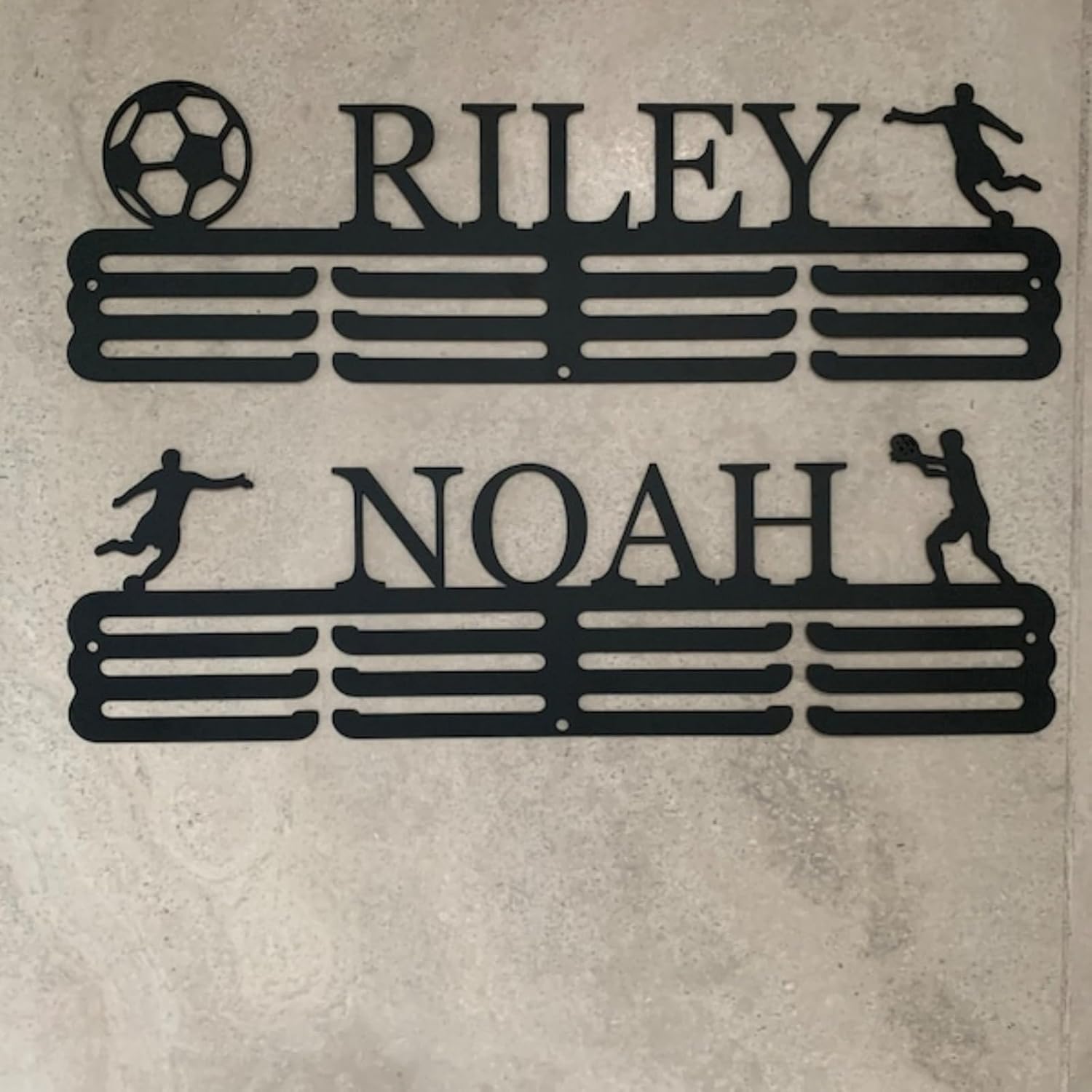 PERSONALIZE YOUR HONORS: Click "Customize Now" to add your name and choose from a variety of decorative designs and select the appropriate size. Whether it's ball games, running and swimming or any sporting event, a personalized medal hanger will reflect the true nature of your accomplishments. 1. GOOD QUALITY: This metal sign is crafted from superior metal material, which guarantees the good quality of the metal sign. 2. PERFECT IN WORKMANSHIP: Well-made metal sign offers exquisite appearance, which is eye-catching. 3. STYLISH DECOR: Unique design, this metal sign will be a perfect decor for your Room . 4. UNIQUE GIFT: This metal sign would be an excellent gift for your friend and family. Material: Quality Metal Colors: 6 popular color options.Black/White/Gold/Copper/Red/Silver Size: The size represents the longest side of the product, and the shortest side is enlarged in the same proportion as the design drawing. MOUNTING Pre-drilled mounting holes,Come with some screws. (If you don't need holes, please let me know) You could also mount with your own chain, screws, wall magnets or whatever you prefer.