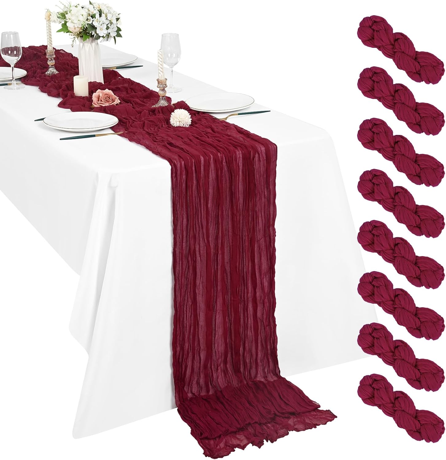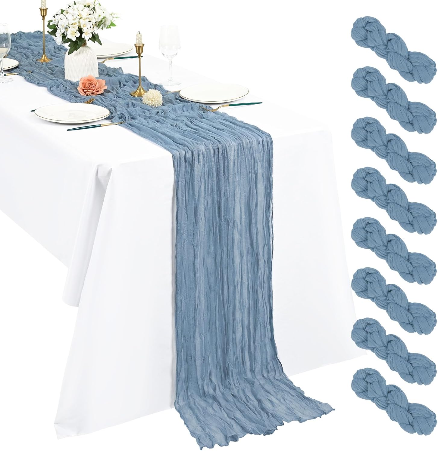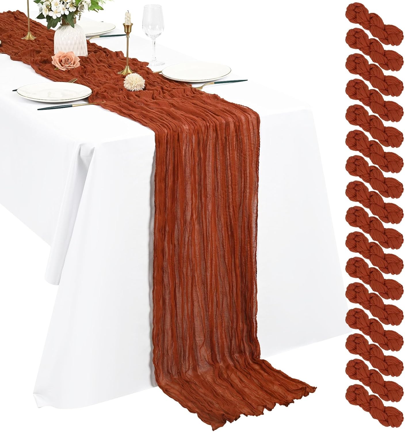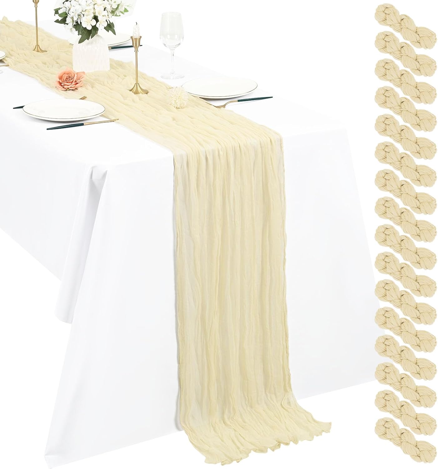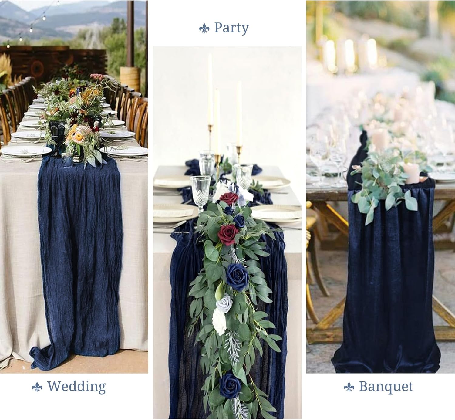 Product Description:Black Green Cheesecloth Table Runner Features:1. 16 Packs cheesecloth table runner measures 35" x 120" in size with wrinkled texture appropriate for round or rectangle tables that can seat 10-12 people. The cheesecloth table runner is long enough, drapes gracefully across your table and flows onto the floor The natural drooping feeling flows to the floor, making people eye-catching and add romantic atmosphere to your table at any event. 2. Our cheesecloth table runners feature a pleated texture design adds more vintage, rustic and aesthetic beauty. This rectangular romantic vintage gauze table runners has a rustic-elegant look and can create a welcoming, elegant atmosphere that your guests will adore.Flaunt boho chic style and rustic elegance into your home or party space with this Cheesecloth Table Runner. 3. The cheesecloth table runner can be applied for many occasions, especially for wedding table decor, wedding receptions, bridal shower, wedding arches, boho themed picnic, birthday party, graduation party, St. Patrick's Day, Valentine's Day, Easter, Halloween, Thanksgiving, Christmas and other special occasions. This romantic table runner is also a great choice to decorate your table, chairs or wedding arch.Specification:Quantity: 16 PiecesMaterial: 100% natural cheesecloth fabric.Size: 35" W x 120"L/10FtPattern: Romantic & VintageColor: BlackWash Tips:1. Cheesecloth table runners are recommended for hand wash in cold water or machine wash in a laundry bag2. Please do not iron or use hot water, do not bleach or soak for too long time.3. Lay flat or hang dry.Package Includes:16 x Black Cheesecloth Table RunnerOur Service:24hours online customer serviceIf You're not completely satisfied with your purchase simply let us knowWe will help you solve your problem well.Notes:Manual measurement, please allow slight size error.Colors may vary slightly due to different screen displays.