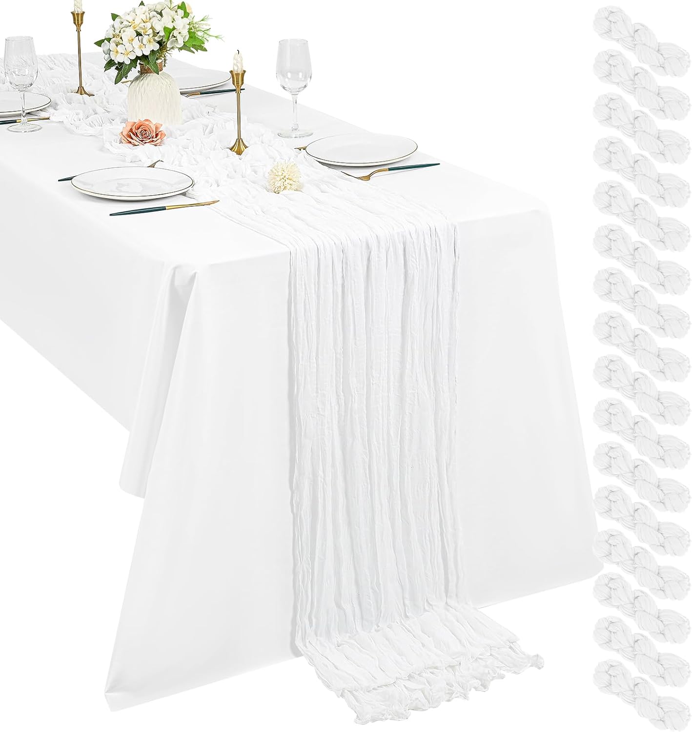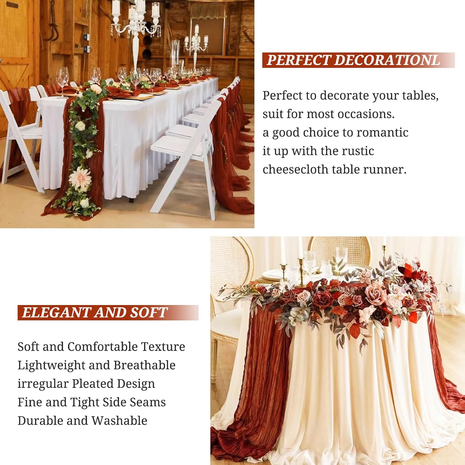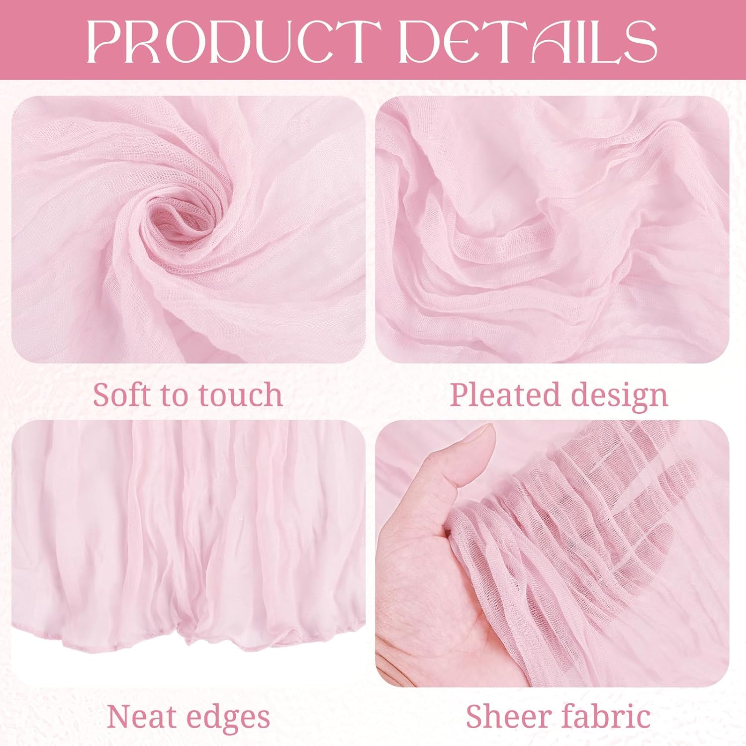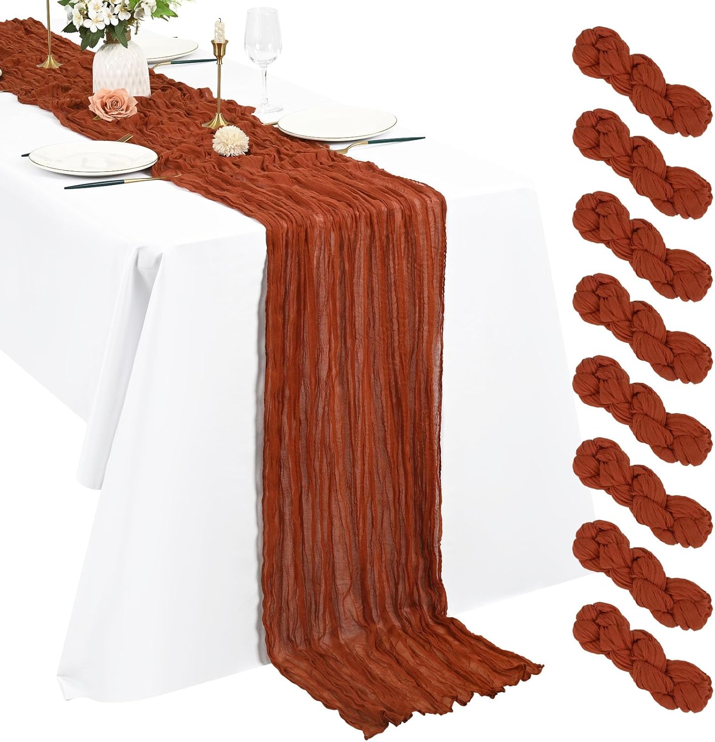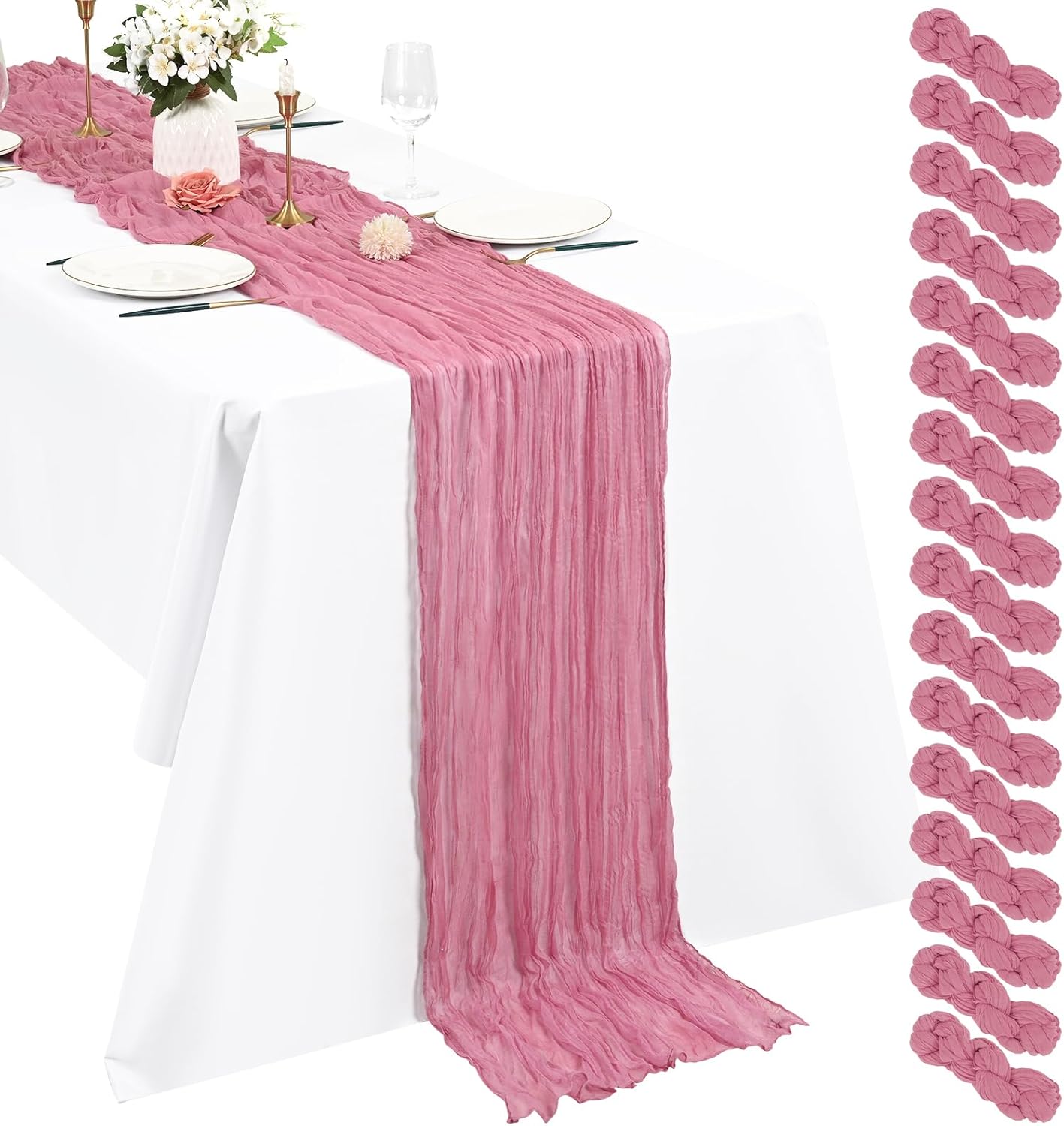 Product Description:Black Green Cheesecloth Table Runner Features:1. 16 Packs cheesecloth table runner measures 35" x 120" in size with wrinkled texture appropriate for round or rectangle tables that can seat 10-12 people. The cheesecloth table runner is long enough, drapes gracefully across your table and flows onto the floor The natural drooping feeling flows to the floor, making people eye-catching and add romantic atmosphere to your table at any event. 2. Our cheesecloth table runners feature a pleated texture design adds more vintage, rustic and aesthetic beauty. This rectangular romantic vintage gauze table runners has a rustic-elegant look and can create a welcoming, elegant atmosphere that your guests will adore.Flaunt boho chic style and rustic elegance into your home or party space with this Cheesecloth Table Runner. 3. The cheesecloth table runner can be applied for many occasions, especially for wedding table decor, wedding receptions, bridal shower, wedding arches, boho themed picnic, birthday party, graduation party, St. Patrick's Day, Valentine's Day, Easter, Halloween, Thanksgiving, Christmas and other special occasions. This romantic table runner is also a great choice to decorate your table, chairs or wedding arch.Specification:Quantity: 16 PiecesMaterial: 100% natural cheesecloth fabric.Size: 35" W x 120"L/10FtPattern: Romantic & VintageColor: BlackWash Tips:1. Cheesecloth table runners are recommended for hand wash in cold water or machine wash in a laundry bag2. Please do not iron or use hot water, do not bleach or soak for too long time.3. Lay flat or hang dry.Package Includes:16 x Black Cheesecloth Table RunnerOur Service:24hours online customer serviceIf You're not completely satisfied with your purchase simply let us knowWe will help you solve your problem well.Notes:Manual measurement, please allow slight size error.Colors may vary slightly due to different screen displays.