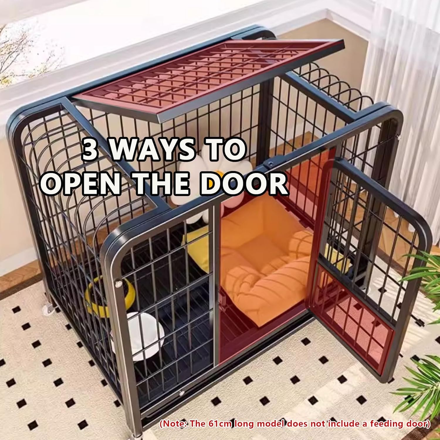 Discover the perfect sanctuary for your furry friends with our premium pet crate, designed to enhance both safety and comfort for small to large dogs and other domestic pets like rabbits. Available in four sizes—suitable for pets weighing up to 50kg—this versatile crate adapts to your pet's needs, whether at home, during training sessions, or while traveling. Choose between classic Black or White finishes to seamlessly blend into your living space.Crafted from durable iron, this pet crate prioritizes security. Its automatic internal locking mechanism ensures an escape-proof environment, giving you peace of mind while your pet relaxes indoors. The four 360-degree swivel casters, complete with locking brakes, allow for easy mobility, making it effortless to reposition the crate in your home or take it on the go.With thoughtful design features, our pet crate is not just a containment solution but a comfort zone for your beloved pet. It fosters a sense of familiarity and safety, which is crucial for training and reducing anxiety during travel. The spacious interior accommodates your pet's natural movements, while the breathable construction promotes airflow, keeping them cool and comfortable.Choosing our pet crate means investing in your pet's well-being. Its sturdy build ensures long-lasting use, while the stylish design complements your home decor. Make your pet's safety and comfort a priority today with our reliable and user-friendly crate, perfect for everyday use or special adventures.