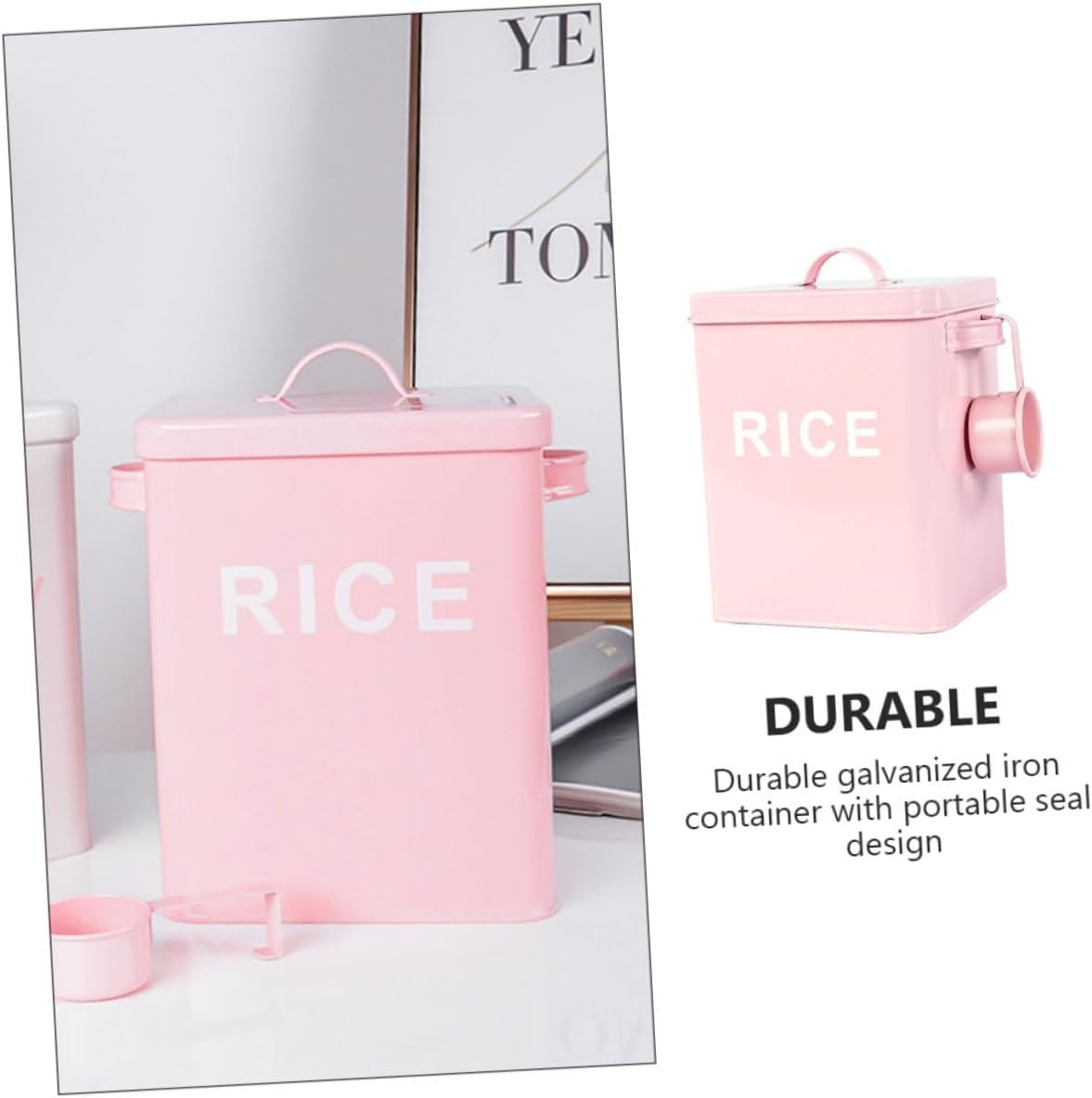 Package Include 1 x Storage Bucket Features -Color: Pink -Size: 23.00X18.50X15.50cm/9.04X7.27X6.09inch -Material: Iron -Product Info:Grain storage barrel -Save space and maximize the convenience of cupboard container for dog food. -Durable galvanized with portable seal design cat food container airtight. -Simple and easy, beautiful and practical, durable for long time serving food storage containers. -Suitable for any pet food, dried goods or rice, etc. and , ensure food lasts food containers. -Made of iron materials, durable structure, safety and health.Goods Informationcat food container airtight You deserve one!.dog food storage containers Are you still looking for a practical and creative storage can? Then you miss our product! Made of iron material, this storage can is environmentally friendly and durable for long time serving
