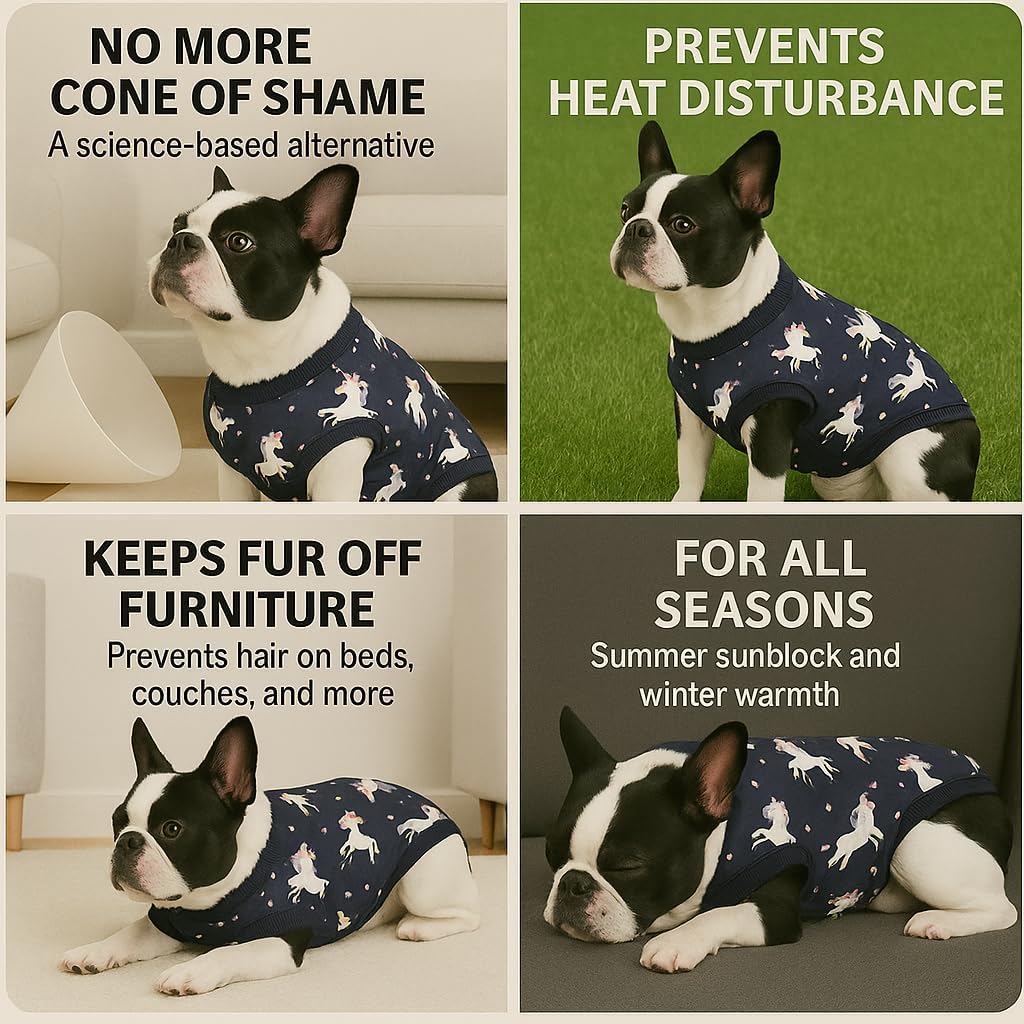 Professional Dog Recovery Suit: This dog recovery suit is a great choice to help give your fur baby the love and care they need for quick and stress-free recovery while dealing with wounds, rashes, shedding and after spaying/neutering surgeries, Perfect for reducing licking and scratching irritated areas which helps against infections. E-collar Alternative: Our recovery suit helps keep patients warm during and after surgery, Great alternative to cone and E-collar, Pet dogs can play and eat with no limitations in a good mood. GENTLE LICKING DISCOURAGE: Soft, low-rim petals form a light, comfortable barrier that helps discourage excessive licking near sensitive zones. The cushioned edge stays gentle on walls and furniture, promoting calm, visible movement during daily recovery time. Designed to ease comfort needs for pets while keeping a cozy, friendly appearance. PHOTO-READY COORDINATES: Pair with our dog recovery suits and leg sleeves for a neat, coordinated look. Its minimal, pet-friendly design fits daily wear—great for quick clips, lounging, or family photos. Add a simple, stylish touch to your pet’s everyday routine while gently protecting sensitive areas. SIZE-GUIDED FIT: An adjustable toggle closure allows easy on and off with a secure, comfortable fit. Simply measure your dog’s neck and refer to the sizing chart before purchase. If measurements fall between sizes, select the larger one for broader coverage and comfort throughout recovery time.
