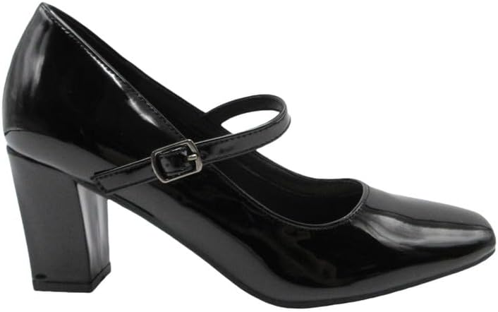 "Step into sophisticated style with these timeless women's dress pumps. The classic square toe design offers a professional look while providing comfortable toe room for all-day wear. Featuring an elegant ankle strap with an adjustable buckle closure, these pumps provide both security and a feminine touch. The sturdy block heel delivers stable support and confidence with every step, making them perfect for the office, special occasions, or any formal event. The sleek black leather-look finish complements any professional or formal attire. These versatile pumps strike the perfect balance between style and functionality, with a heel height that's ideal for extended wear. The classic silhouette ensures these shoes will remain a wardrobe staple season after season. Pair them with your favorite suit, dress, or skirt for a polished, professional appearance that transitions seamlessly from day to evening wear."