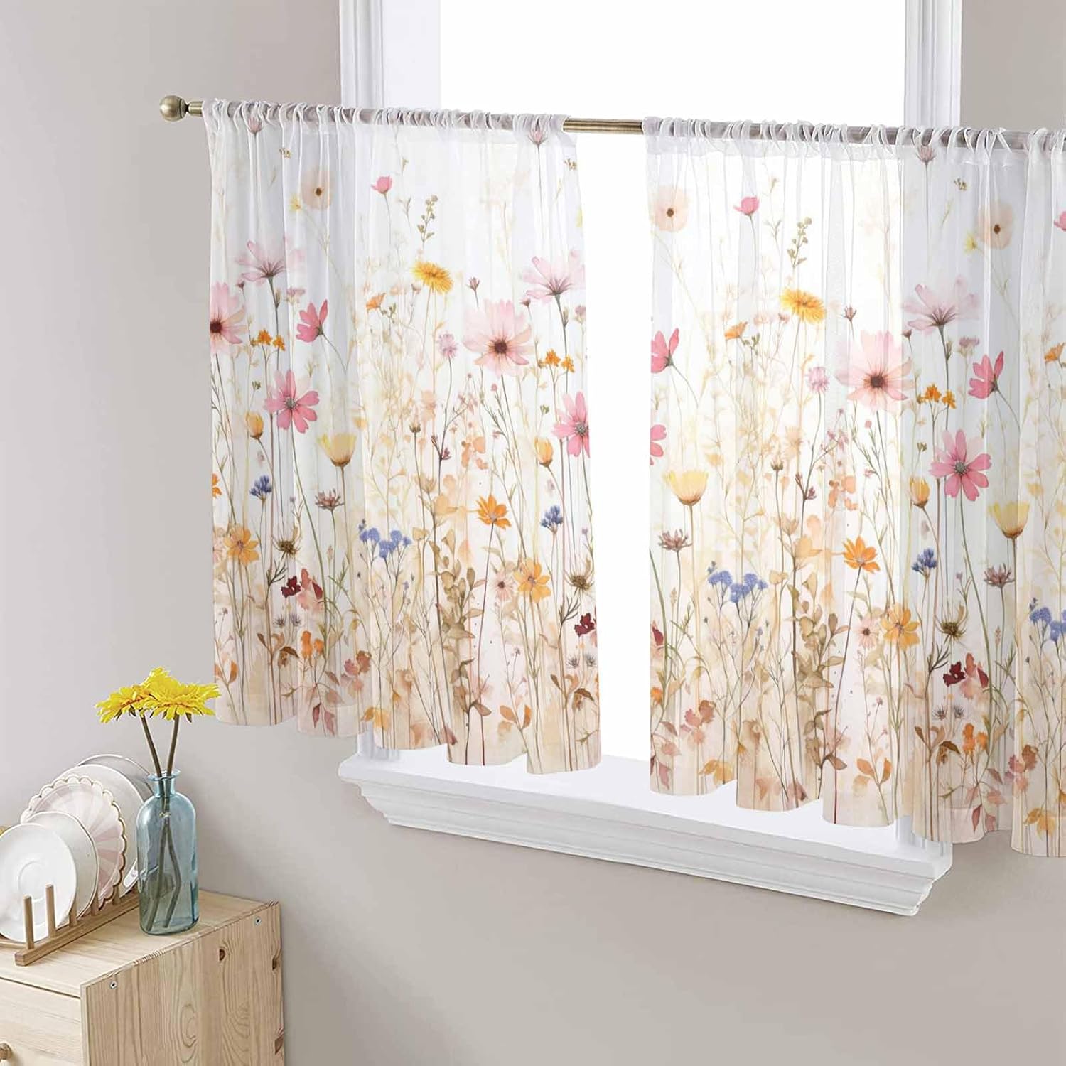 Pink Green Floral Sheer Curtains for Living Room Bedroom Dining Room Bringing your room with the soft elegance of our chiffon curtains. A perfect blend of style and quality that enhances any room Premium Fabric&Exquisite Workmanship Made from high-quality chiffon fabric, the voile curtains with rod pocket feel smooth to the touch and offer a light, breathable texture that flows beautifully in any space. The soft sheer backdrop curtains for weddings are crafted for long-term use Perfect Balance Between Light and Privacy The rod pocket drapes for living room gently filter light to create a soft while maintaining daytime and nighttime privacy. Whether you want to let the morning sun in without harsh glare or enjoy peaceful evenings without compromising privacy, the light filtering farmhouse rod pocket window drapes for bedroom 2 panels offer the perfect balance Printed Patterned Curtain Panels Printed with stylish and versatile patterns, the privacy curtains add a personal touch to any decor style, from coastal and farmhouse to modern country or cottage-inspired homes. The translucent design blends beautifully into both casual and elegant interiors, and the timeless look makes sheerness of the bedroom curtains a thoughtful gift Dimension Sheer Curtains 45 Inch Long 2 Panels Set: 2pcs 52"Wx45"L Kitchen Curtains Sheer Curtains 54 Inch Long 2 Panels Set: 2pcs 52"Wx54"L Sheer Curtains Sheer Curtains 63 Inch Long 2 Panels Set: 2pcs 52"Wx63"L Sheer Curtains Sheer Curtains 72 Inch Long 2 Panels Set: 2pcs 52"Wx72"L Sheer Curtains for Living Room Sheer Curtains 84 Inch Long 2 Panels Set: 2pcs 52"Wx84"L Sheer Curtain Cortinas Para Sala Sheer Curtains 96 Inch Long 2 Panels Set: 2pcs 52"Wx96"L Sheer Curtains Cortinas De Cocina Sheer Curtains 108 Inch Long 2 Panels Set: 2pcs 52"Wx108"L Sheer Curtains for Bedroom