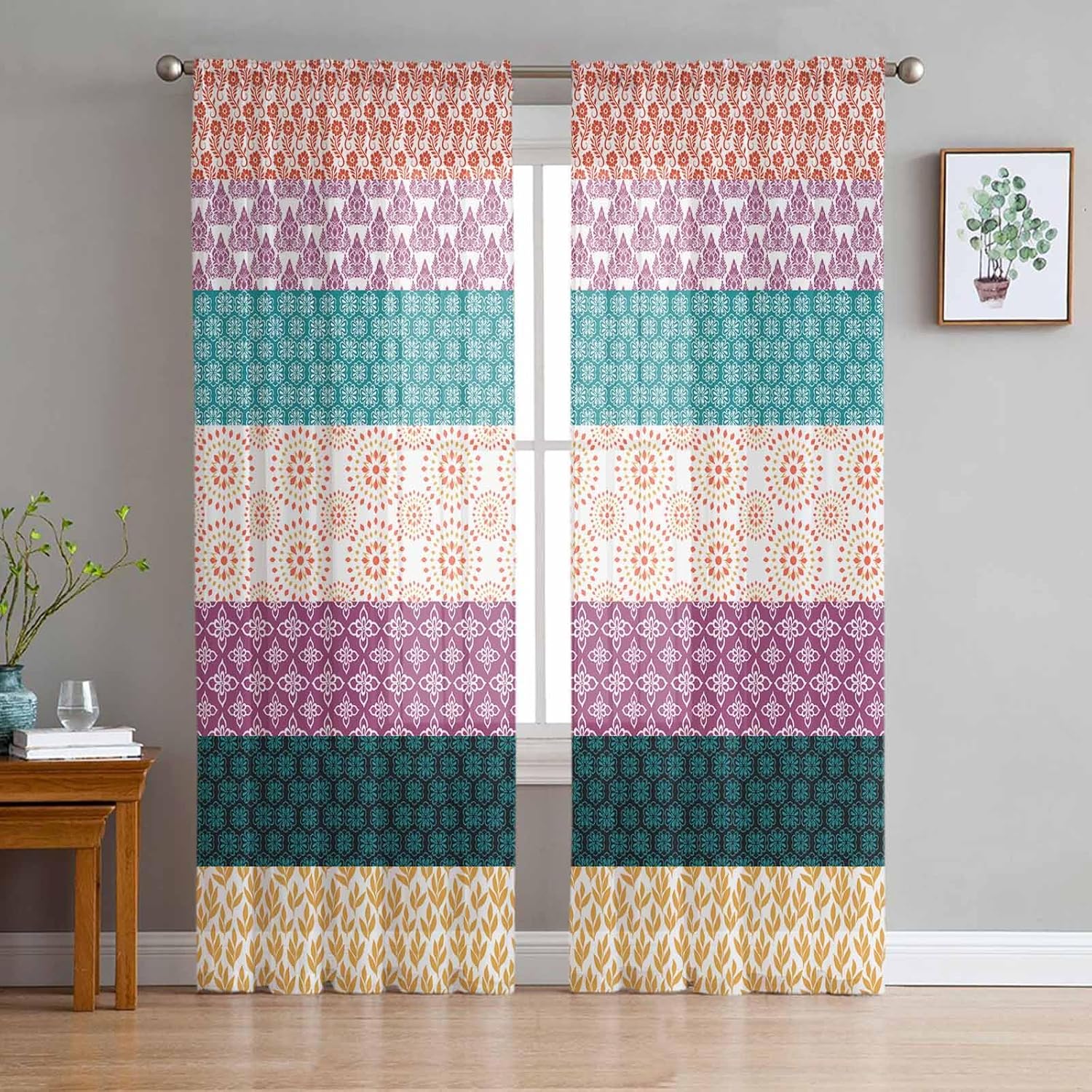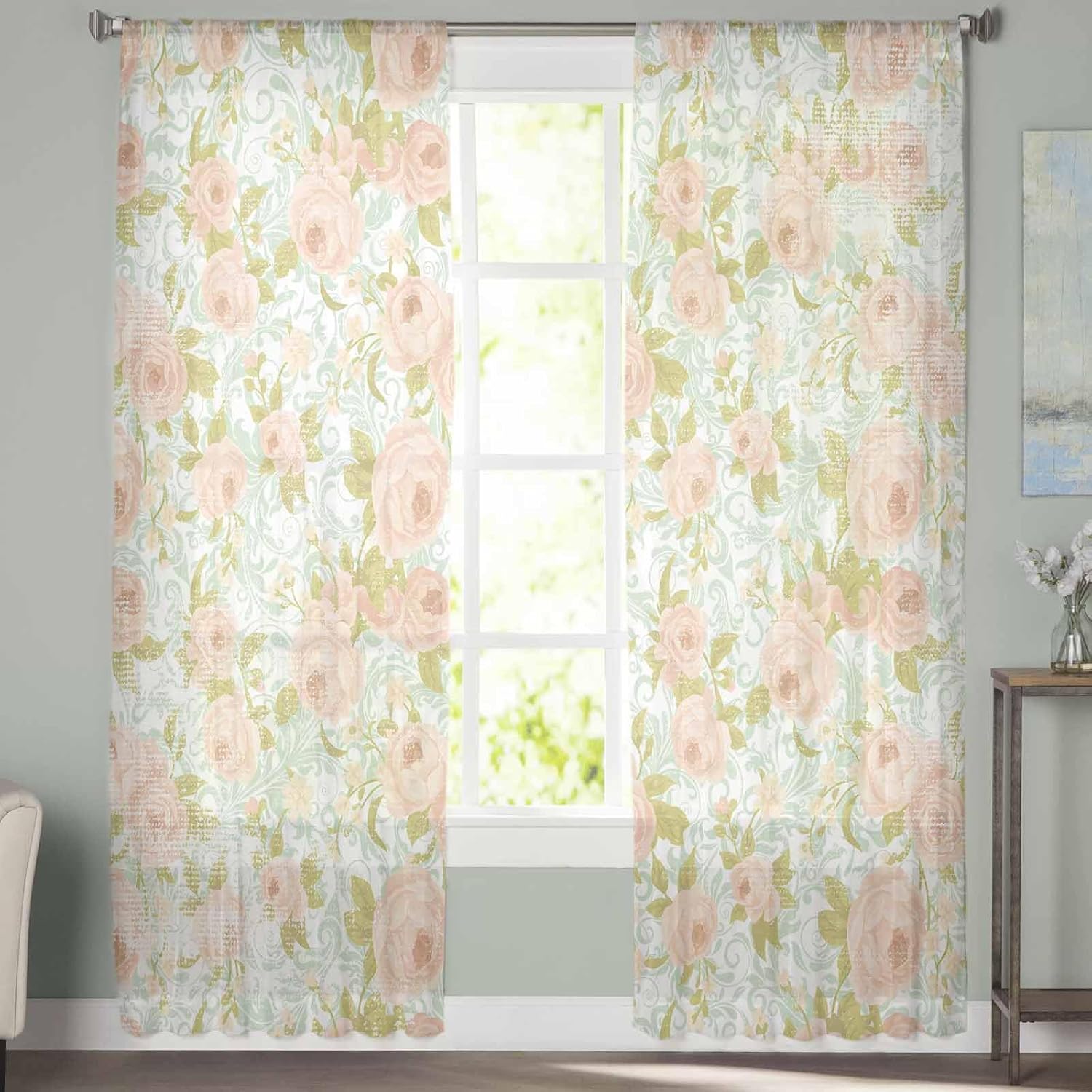 | Model Name | Pink Green Sheer Curtains 2 Panels Set |