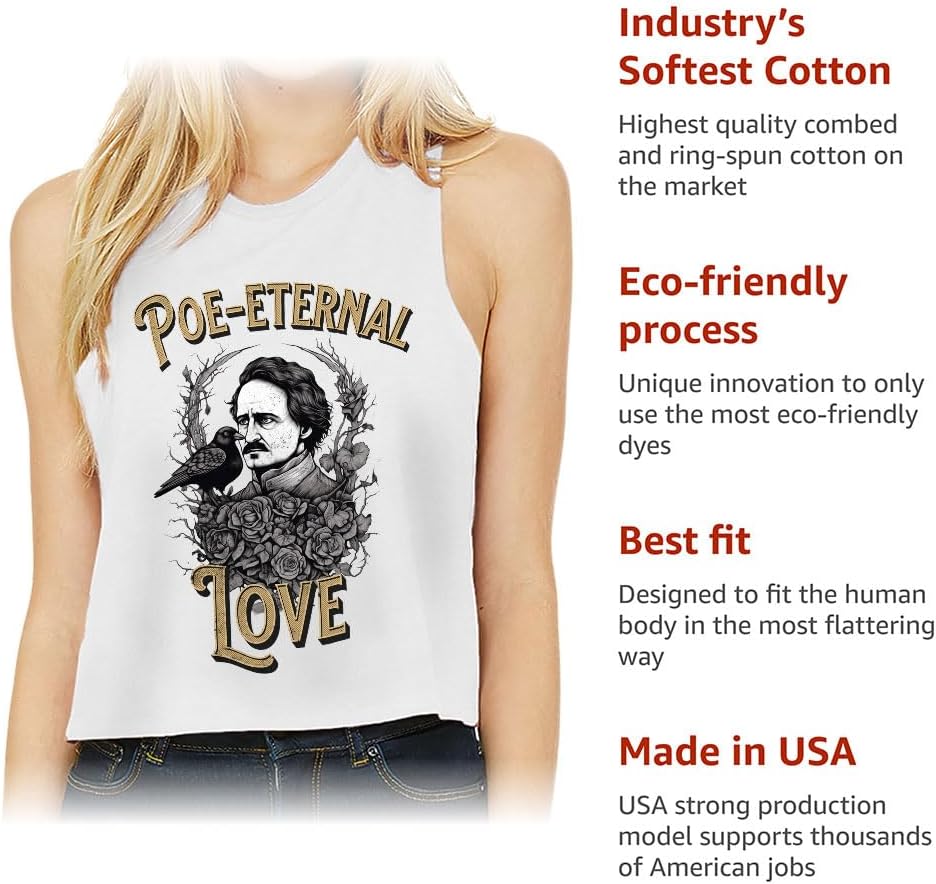 Cute and flattering Poe-eternal Love Racerback Cropped Tank is suitable for most indoor or outdoor activities, such as gym, yoga, running, hiking, beach or relaxing around the house. Pair Crow Women's Tank with your favorite sports bras, especially strappy ones, and high-waisted leggings, then you will enjoy cool and comfortable exercise throughout the summer.