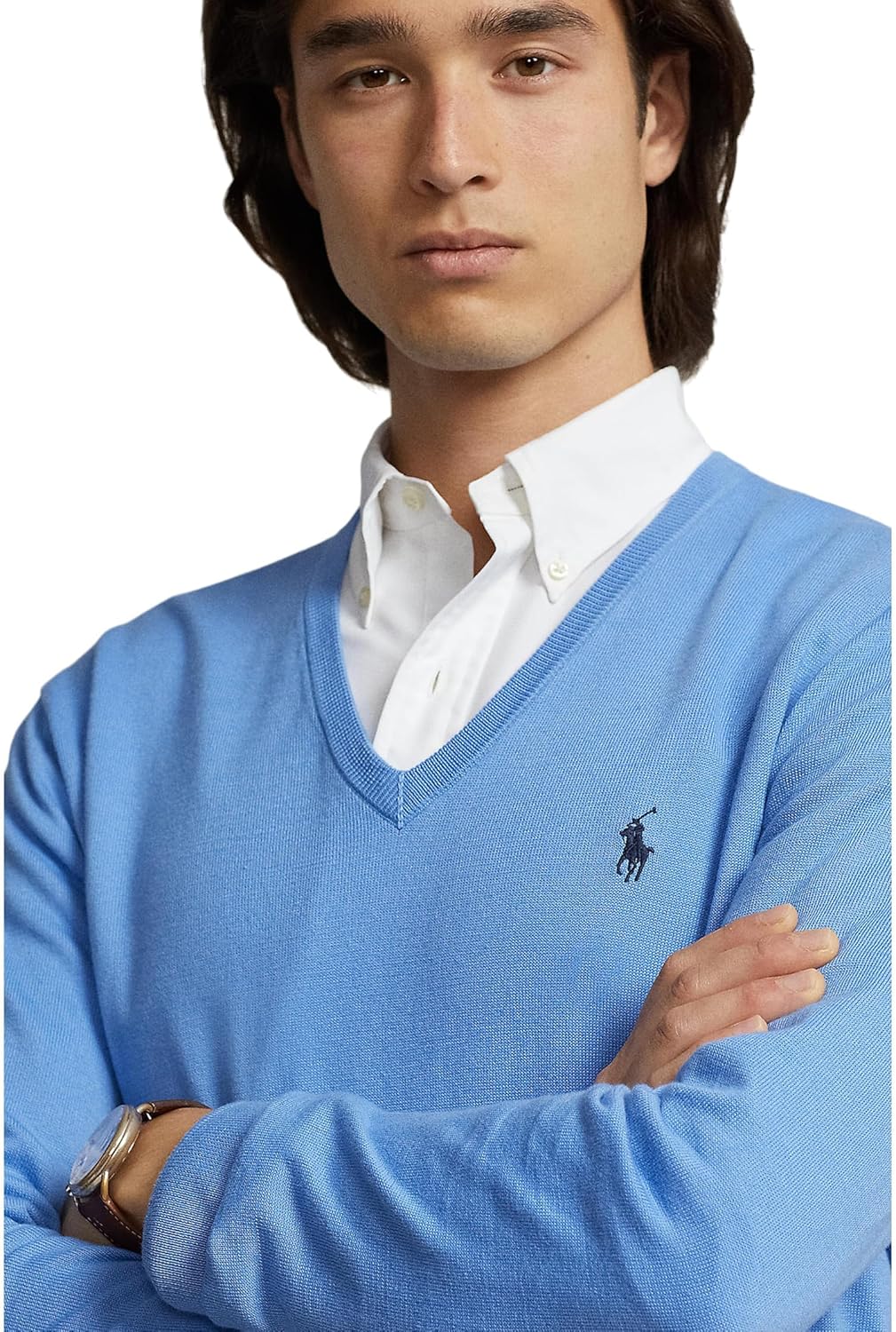 This V-neck sweater is finely knit from soft cotton and finished with our signature embroidered Pony.