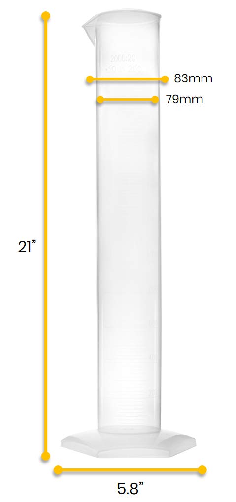 • INDUSTRIAL QUALITY || 2000ml capacity measuring cylinder. Class B tolerance. The translucent, rigid polymer construction is resistant to fatigue for superior and dependable durability
