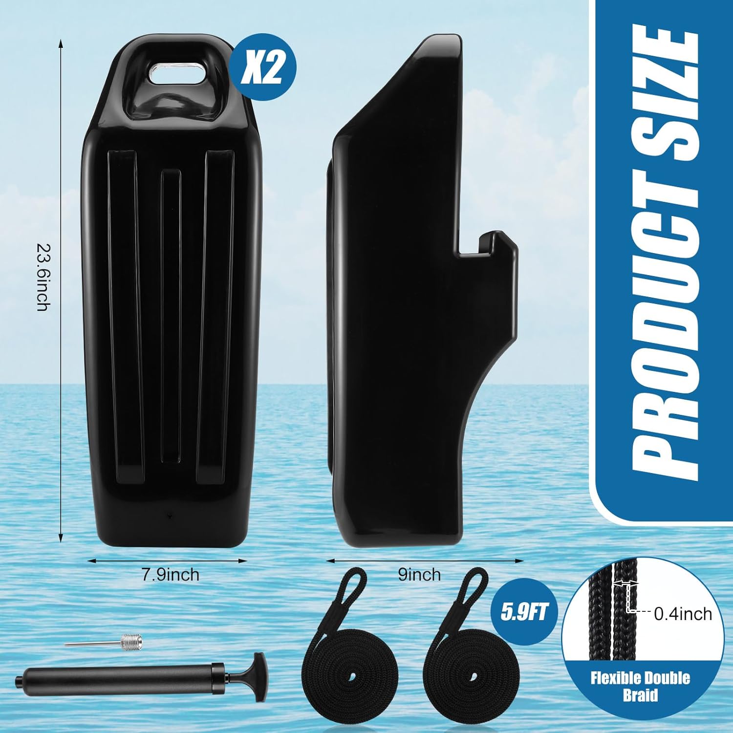 | Included Components | 1 x Inflation kit, 2 Rolls of rope, 2 x Inflatable dock bumpers |