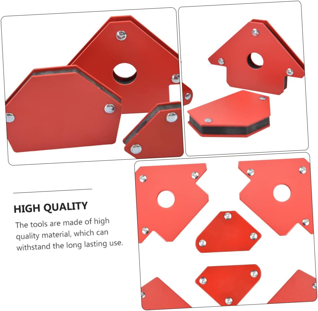 Package Include 6 x welding holder Features - Packaging size: About 27 x x 2cm/10.6 x 9.4 x 0.8inch welding magnets - Material: High-carbon steel magnetic welding holder - Color: Red multi-angle welding tool - It comes with the compact size, it won't affect your normal welding work magnetic welding auxiliary tool. - High-carbon material, not easy to deform or break welding auxiliary tool. - They are made of , which can be used for the long time welding magnets holder. - design, very convenient and practical to use magnetic welding tools. - The triangle shape design enables you to work with different angles while welding pieces welding angle auxiliary tool.Goods Descriptionwelding holder It will bring efficiency and convenience to your welding work.multi-angle welding holder Practical welding auxiliary tool.magnetic welding fixator Are you looking for a practical tool for your welding work? This of welding auxiliary tool will be a choice for you! It is made of , durable and sturdy