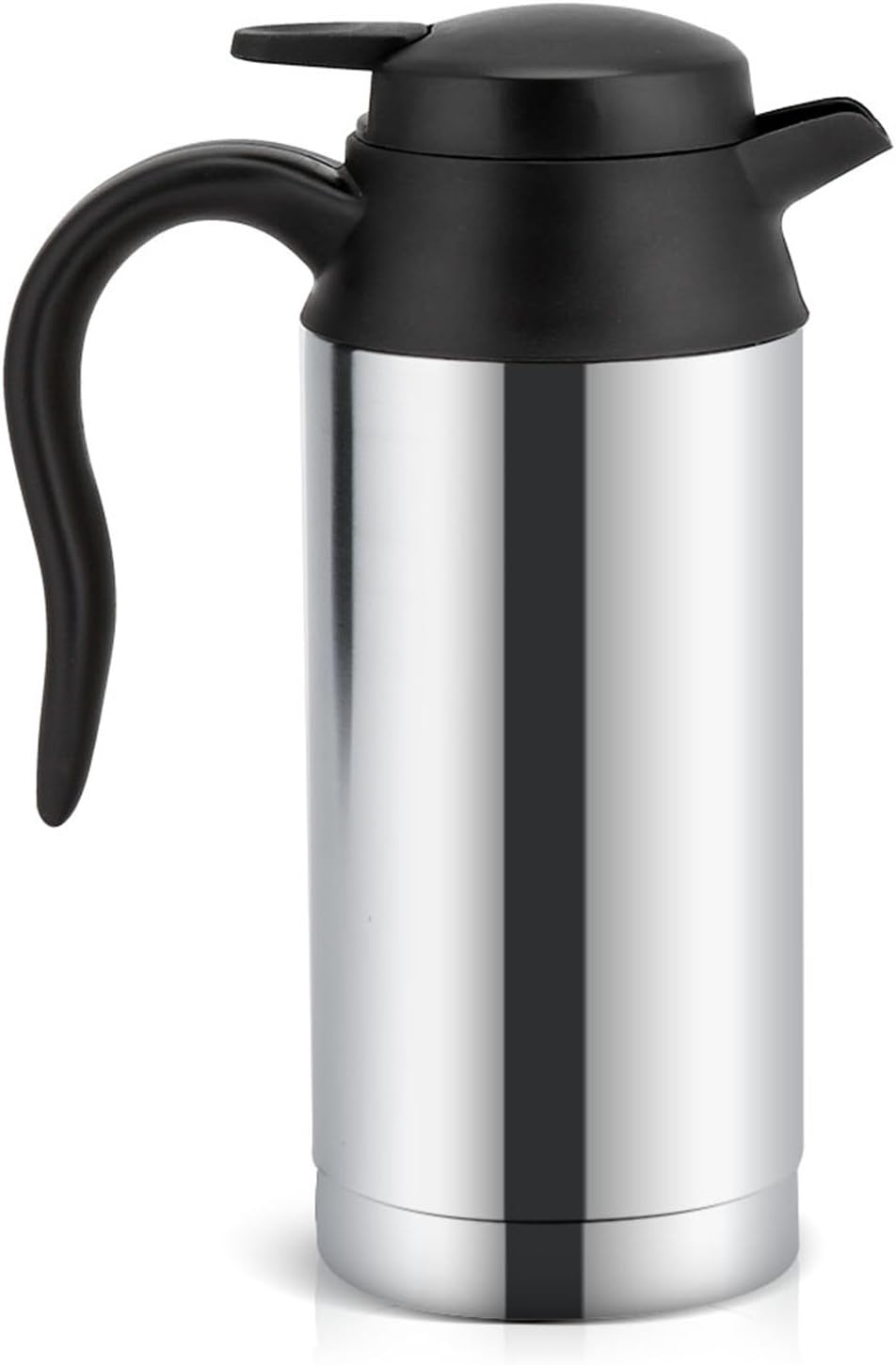 Description:Powered by DC 12V cigarette lighter plug power source, this heating kettle enables to drink hot water on road. It is made of durable and safe 304 stainless steel and plastic material and also designed with sealed ring on the lid to prevent liquid spilling out and improve the efficiency of heat preservation. The kettle has a indicator light, it will keep on red till the water boil, after water boiled, it will turn to green color. 750ml capacity and fits most car cup holders, great for travel use. Suitable for drivers, business man or any other kinds of people who need long time driving trip.FeaturesFood grade 304 stainless steel and plastic material, safe to drink the boiled water, durable and easy to cleanUsing the latest electromagnetic heating technology, it heat up your water into 100℃, the 12V takes 45 minutes and the 24V takes about 25 minutes. When the water is up to 100℃, it will automatically power offThe indicator light turns red when working, and green when works done. And it will turn red when water temperature is below rated temperatureSealed lid made by high quality plastic, safe and non‑toxic, good sealing performance to keep water warm, and ensures that the drink does not spill over750ml capacity and fits most car cup holders, great for travel use. Ideal for hot water, coffee, tea, beverage, etcSpecification:Condition: Brand NewMaterial: Stainless Steel & PlasticColor: Shown as pictureCapacity: 750mlPower: 120WVoltage: 12VSize: Approx. 220 x 85mm / 8.7 x 3.3inchHeating Time: It takes 45 minutes for a pot of water (750mL at room temperature) to boil at 12V and about 25 minutes for 24VPackage Weight: Approx. 629gPackage Included:1 x Car Electric Bottle with DC12V Charger1 x User ManualNote:1. Please allow 1-2 cm error due to manual measurement and make sure you do not mind before ordering.2. Please understand that colors may exist chromatic aberration as the different placement of pictures.3. The product depends on the speed of the temperature increase according to the input voltage, and some vehicles are current-limited.4. Please note that the new type and old type of this product will be sent randomly, and make sure you will not mind before ordering.
