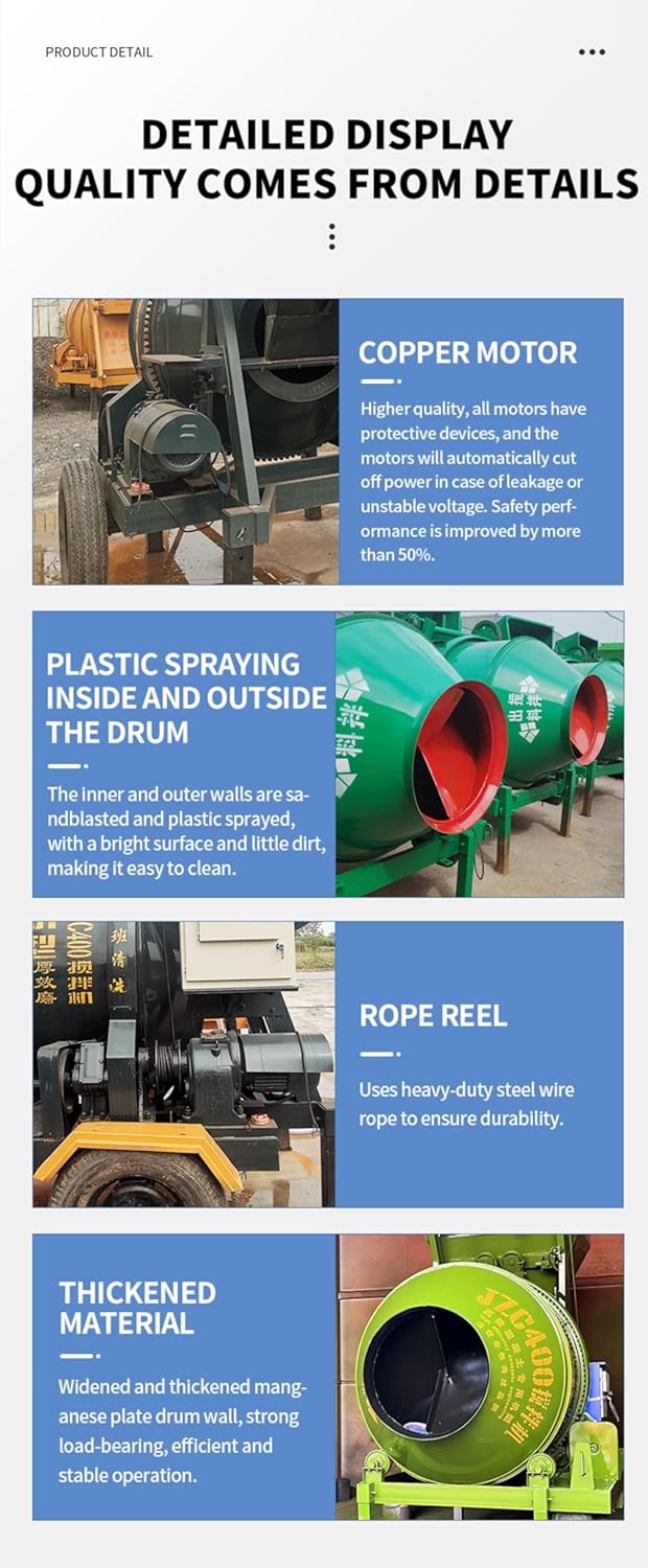 This portable concrete mixer is an excellent choice for DIY projects and home repairs. With a reinforced drum and efficient electric cement mixer system, it handles concrete, mortar, and plaster with ease. Compact size and mobility make it ideal for garden, fence, and renovation projects.