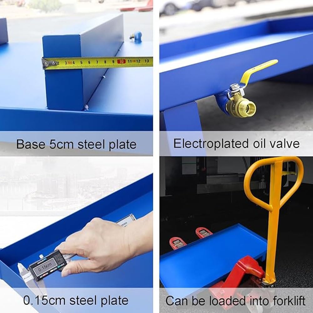 Modular Spill Containment Platform – Spill Tray – Load-Bearing Spill Tray No leaks, no worries!!! This metal pallet offers a higher load-bearing capacity than plastic pallets. The seamless construction of the spill containment platform prevents leaks and unwanted spills, helping to avoid potential fines. The removable metal spill containment platform facilitates the handling and transport of goods. Ideal for use in various industrial parks, warehouses, aquaculture water reservoirs, and more. PRODUCT DETAILS Name: Modular Collection Platform/Metal Pallet Material: Cold-rolled steel Thickness: 1.5 mm Color: Silver Blue (the colors are striking and colorfast) Features: Wear-resistant, seamless construction, high load capacity PRODUCT SIZES Size: 65 x 65 x 15 cm Capacity: approx. 20 l Load capacity: approx. 500 kg Size: 125 x 65 x 15 cm Capacity: approx. 40 l Load capacity: approx. 500 kg Size: 125 x 125 x 15 cm Capacity: approx. 80 l l Load capacity: approx. 2000 kg SCOPE OF DELIVERY Collection platform x 1
