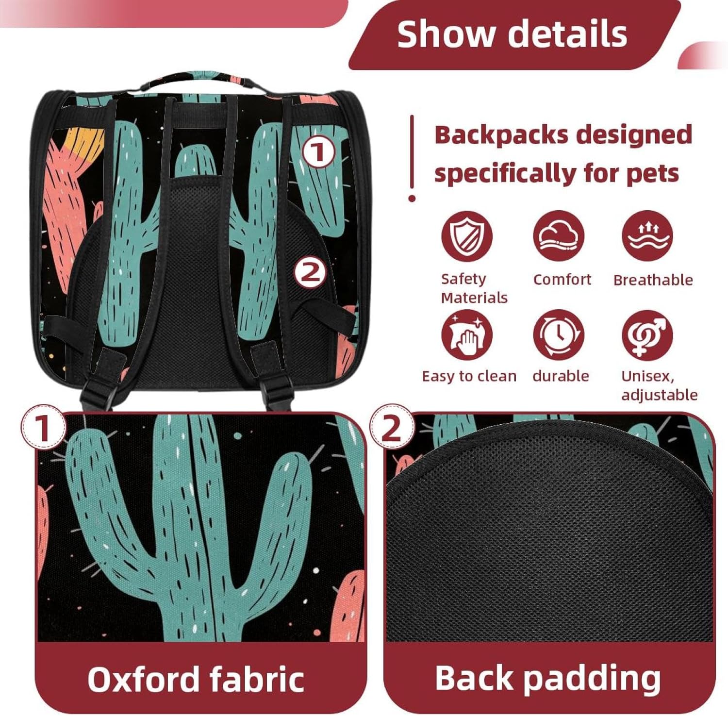 Well made: Cat Backpack Carrier is made from 900D oxford fabric, pp webbing, velvet, nylon, which is very sturdy, environmentally friendly and breathable. Not easily scratched by pet’s claws, pet backpack carrier is SAFETY & ANTI-SCRATCH. The back padding will give you a comfortable and breathable experience. Ventilated Backpack: With a breathable window in the front, this pet backpack allows cats to enjoy the sun without feeling stuffy. There are two side pockets and one big front pocket, and you can take foods or toy for your kitten pet. It is big enough for cat to turn around, and there are side pockets and hook holes, you will enjoy the greatest convenience when taking your cat out. Perfect size: Cat carrier is 15.75x9.84x13.78in/40x25x35cm. Fits most small/medium sized cat, dog, and pet. Quality fleece bed provide a comfortable place for your pet. Lightweight and easy to carry to all places. Built-in harnesses keep your naughty friends from escaping. Removable cosy mat for easier cleaning and let your pet enjoy it inside. Easy to carry: The adjustable shoulder strap of pet carrier bag help you hands-free carrying and makes it the most safe and convenient pet carrier bag for your travel. Seat belt design provide pets with safety protection throughout the trip. Pad protection keep your pets comfortable during travel. Unique Design: Innovative inside graphic design gives you a stereoscopic 3D visual experience. You also send us the photos you interest to make your unique dog or cat carrier. Pet bag is also a amazing gift for pet lover.