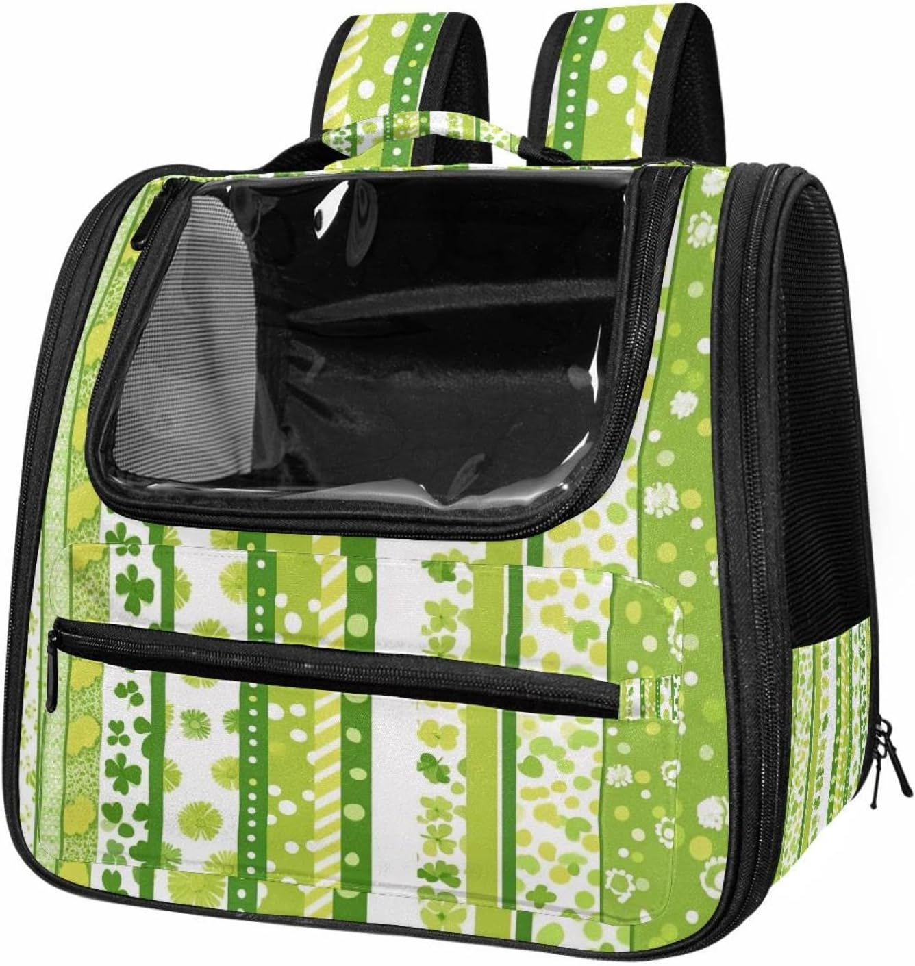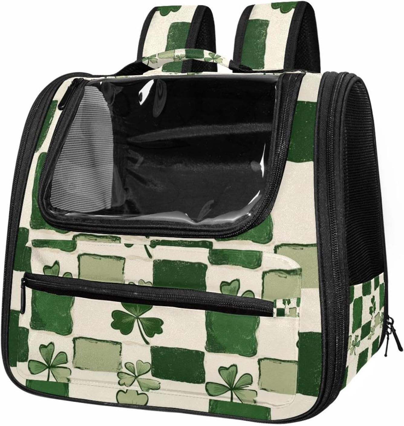 Well made: Cat Backpack Carrier is made from 900D oxford fabric, pp webbing, velvet, nylon, which is very sturdy, environmentally friendly and breathable. Not easily scratched by pet’s claws, pet backpack carrier is SAFETY & ANTI-SCRATCH. The back padding will give you a comfortable and breathable experience. Ventilated Backpack: With a breathable window in the front, this pet backpack allows cats to enjoy the sun without feeling stuffy. There are two side pockets and one big front pocket, and you can take foods or toy for your kitten pet. It is big enough for cat to turn around, and there are side pockets and hook holes, you will enjoy the greatest convenience when taking your cat out. Perfect size: Cat carrier is 15.75x9.84x13.78in/40x25x35cm. Fits most small/medium sized cat, dog, and pet. Quality fleece bed provide a comfortable place for your pet. Lightweight and easy to carry to all places. Built-in harnesses keep your naughty friends from escaping. Removable cosy mat for easier cleaning and let your pet enjoy it inside. Easy to carry: The adjustable shoulder strap of pet carrier bag help you hands-free carrying and makes it the most safe and convenient pet carrier bag for your travel. Seat belt design provide pets with safety protection throughout the trip. Pad protection keep your pets comfortable during travel. Unique Design: Innovative inside graphic design gives you a stereoscopic 3D visual experience. You also send us the photos you interest to make your unique dog or cat carrier. Pet bag is also a amazing gift for pet lover.