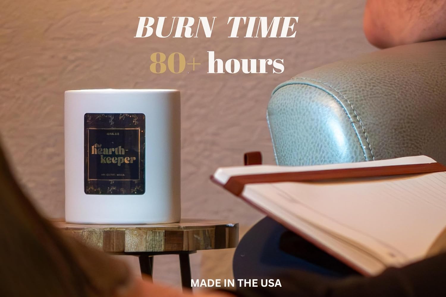 Like entering a your grannies log cabin. There's a pie in the oven and a log on the fire. The Hearth-Keeper candle by Alma Joe is hand poured and crafted with all-natural soy and coconut wax. Our candle wax is biodegradable, sustainable, and clean burning. The pure cotton wicks ensure a controlled burn with minimal soot. The 12 oz ceramic vase offer impressive burn times of 80+ hours when burned in 2–3 hour sessions with proper wick care. All our candles are non-toxic, phthalate-free, made with essential oils, and contain no dyes or artificial enhancers. Transform your space with this thoughtfully crafted candle that brings the warm, comforting ambiance of fall and winter into your home. Our candle names represent a unique archetype. These archetypes portray the creative roles we see and feel during holiday season. The Hearth-Keeper is the quiet guardian of REST, BELONGING, and the RITUALS that make us feel at home. This premium candle listens inward, trusts the quiet, and follows what can't be explained but feels true. Alma Joe is a family-owned business that believes in giving back. We contribute 10% of our proceeds to Rocky Mountain Children's Health Foundation. A charitable organization that provides direct financial support to children and families dealing with critical illness. Our Candles are hand poured in the USA.